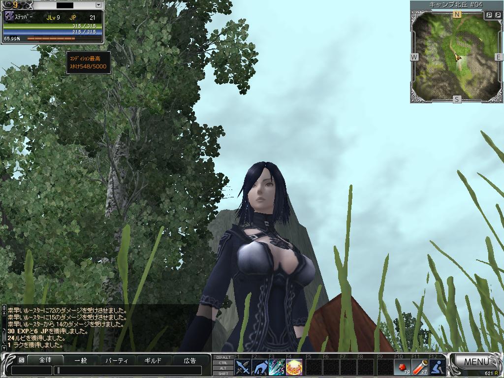 RAPPELZのもう一つの特徴が「スタミナ」の概念だ。MMORPGといえば,プレイにより長い時間を費やしたプレイヤーほど有利になるのが常識だが,本作では必ずしもそうとは言い切れない。というのも,継続して戦闘することによってスタミナが減少し,それに応じて獲得できる経験値とジョブポイントの量も減少するからだ。スタミナが100を切ると獲得経験値は半減してしまう。すなわち同じレベルアップをするにしても,単純に倍の数のモンスターを狩らなければならないのだ。