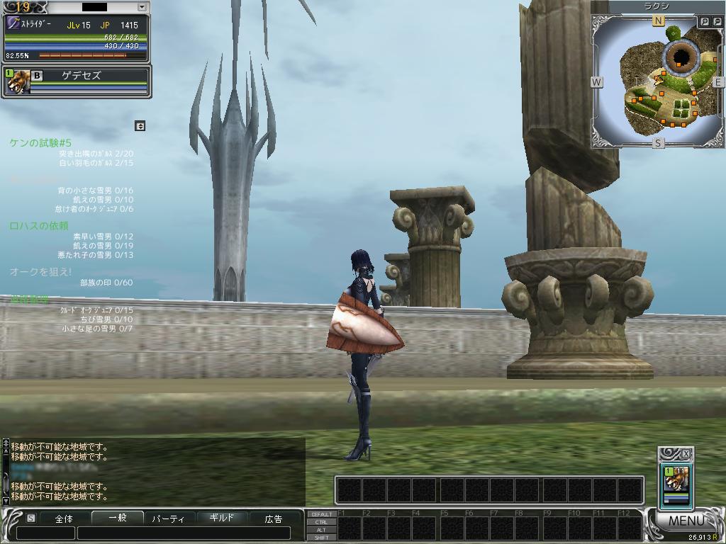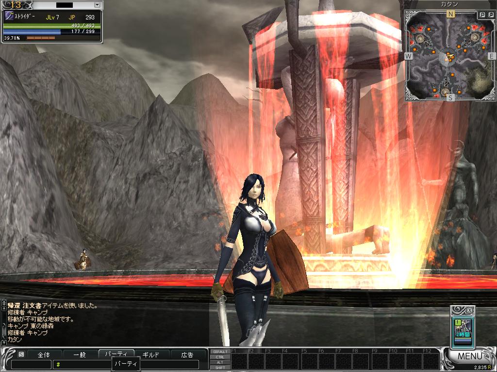 | クエストのノルマは,画面左のように透明化して表示でき,非常に便利である | アシュラの街,カタン。こちらはカオスのイメージを強調するためか,全体に荒涼とした風景が続く。なんとなく,陰鬱な気分にさせられるプレイヤーもいるかもしれない | |