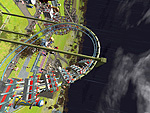 そんなRCTシリーズ最新作が,「ローラーコースタータイクーン3 日本語版」だ。本作からフル3Dグラフィックスになり,自分で作り上げた遊園地をさまざまな角度から眺めたり,ローラーコースターやアトラクションに実際に乗っているかのような疑似体験ができるようになった。このへんはすでにほかの遊園地経営シムで実現されているだけに,目新しさの点でのパンチは弱いが,根っからのRCTファンは手放しで喜べるところだ。また,時間帯や天候の変化,水面に映る風景,ライトアップされた夜の遊園地など,見た目の美しさは,ほかの遊園地経営シムよりも一歩リードといった感じ。