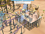 | アトラクションはカメラアングルを切り替えて眺められる。疑似体験もできるが,酔わないように注意 | ローラーコースターには高さが必要なものも多い。入り口と出口から地上に降ろす歩道設計は悩みどころ | 隣接するローラーコースターに別のローラーコースターを絡ませる場合にはゲーム中で直接設計するとよい |
