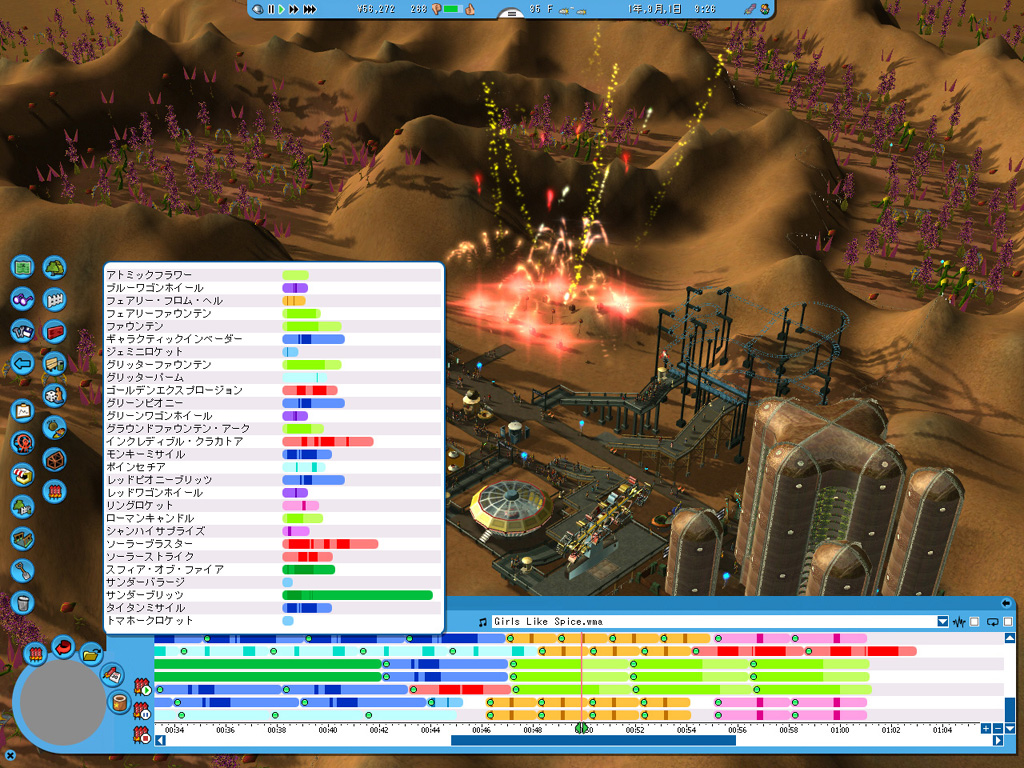 見た目の派手さから,どうしても過激なアトラクションを設置しがちだが,訪れるピープ全員がド派手なアトラクションを求めているわけではない。アトラクションには興奮度,強烈度,ゲロ度というパラメータがあり,それにより楽しめるピープもいれば楽しめないピープもいる。マジメに遊園地を経営するなら,過激度が低いものから高いものまでバランスよく設置する必要があるのだ。とはいえ,強烈なアトラクションばかりの遊園地を作ってピープ達を恐怖のどん底に叩き落とす遊び方も,もちろんアリだ。