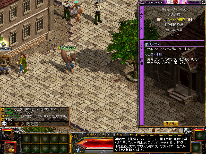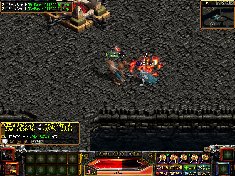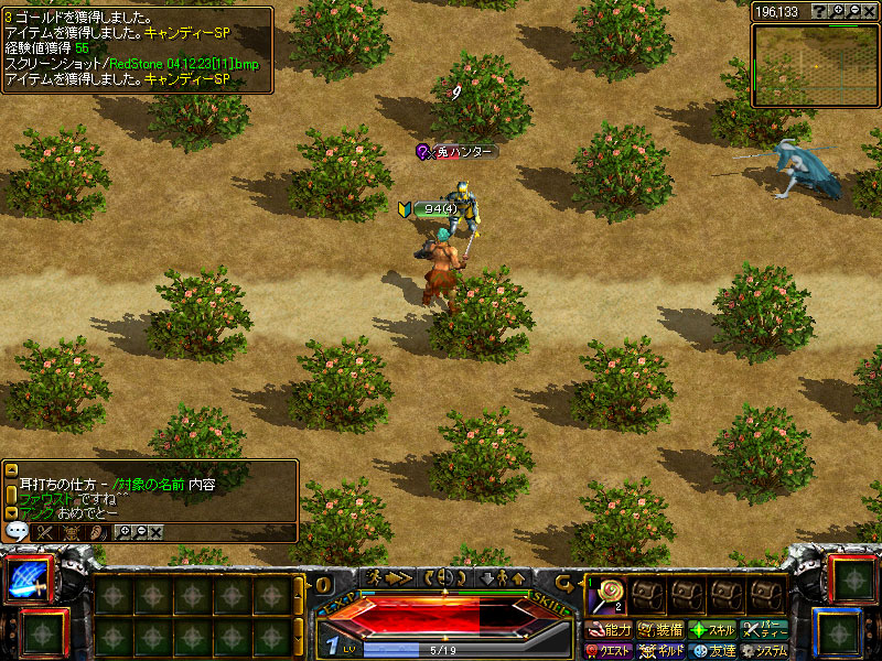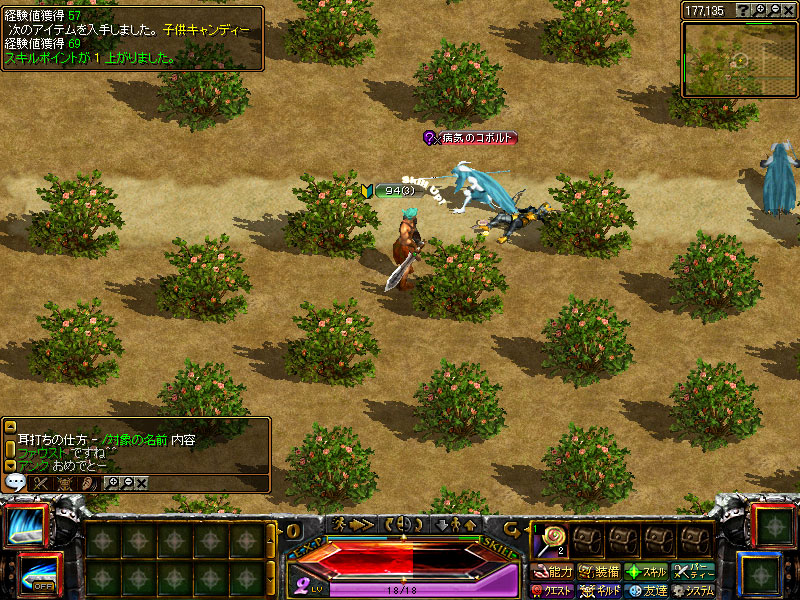 その分といってはなんだが,HP回復に関しては少し厳しめだ。まず,HPの自然回復は座っていないと発生しない。一応,ウィザードが体力回復のスキルを覚えられるが,このスキルはかなり高レベルのもので,始めて2〜3日じゃ全然覚えられないというシロモノである。少なくとも,序盤における戦闘中のHP回復は,アイテムに頼るしかないといった案配だ。