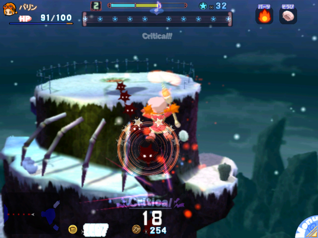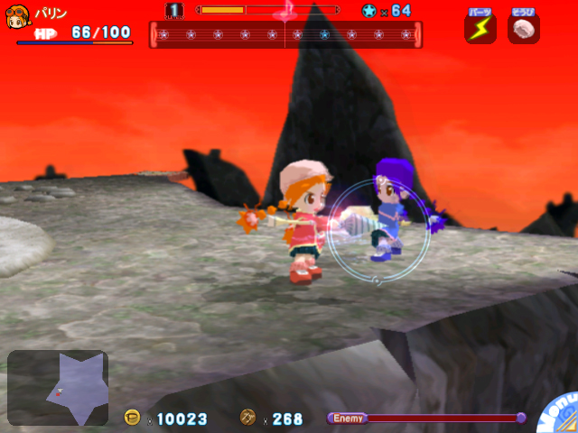 主なゲームシステムは,力を溜めて固い物を壊すチャージ攻撃や,BGMのリズムに合わせて大ダメージを与えるクリティカル攻撃,ジャンプした先の敵に速攻で攻撃を仕掛けるターゲットアタック,ターゲットアタックを応用した連続アタックなど。どれもフル3Dの特性を生かした作りとなっており,従来とは一味違うアクションを楽しむことができる。