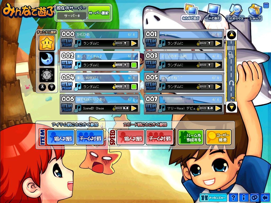 人気のアイテムチーム部屋が並ぶ。Rコインが多く稼げるのも魅力の一つ