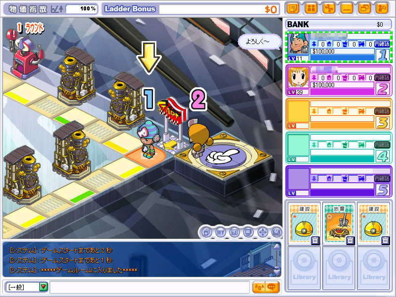 マスには土地だけでなく,予測不能なイベントが発生するマスや,カードを購入できるカード屋マスなどさまざまな種類があり,また頻繁に場所を変えるNPCがマスの上に立っている場合もある。NPCは止まると嬉しい福の神や,遭いたくない貧乏神などこれまた種類が豊富で,NPCの存在によってあっと驚く大逆転劇が演じられることもあるのだ。