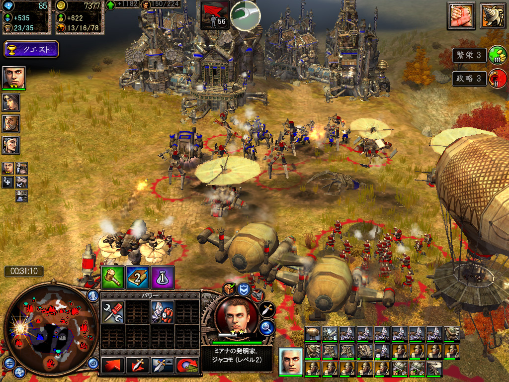 だが,本作のプロデューサーやデザイナーが繰り返し語っているように,オリジナルの世界観だからこそ実現できた,自由なゲームデザインという側面も見逃せない。何か既存のものをモデルにしてゲームを作ろうとすると,どうしてもゲームがその世界の枠内に制限されてしまう。ゲームとして最も面白いものを追求しようとして,オリジナルの世界を構築したことは大いに評価したいし,実際その結果として,ほかのRTSには見られない面白さを実現していると思う。