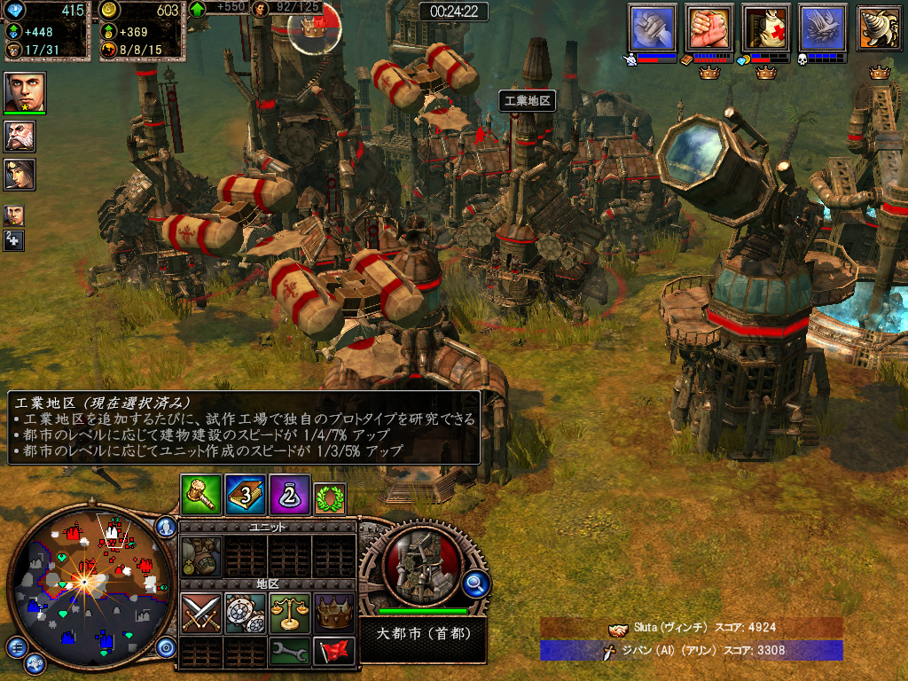 RoLの内政の特徴として,同じ種類の建物やユニットは,作れば作るほどコストが上昇していくという点が重要だ(傾斜コストという)。これが内政において非常に頭を悩ますと同時に,戦略性が求められる部分になっている。とくに地区を建設する順序は,本作において最も基本的かつ重要な戦略的方針決定といえる。