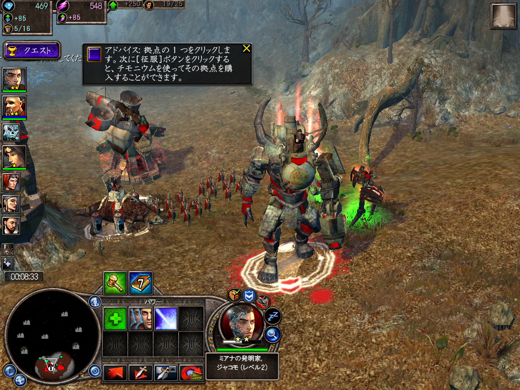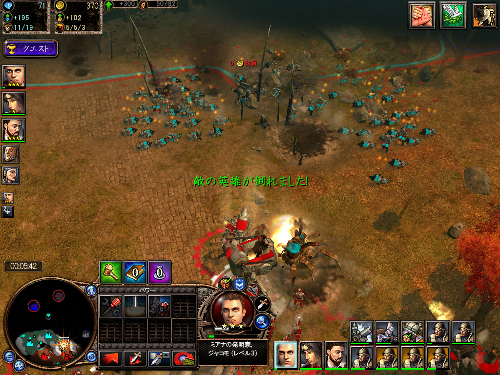 英雄は単体でも十分強いが,それだけでなく味方全体に恩恵をもたらす能力を持っている場合が多い。例えばヴィンチの英雄「ジャコモ」は,レベルが上がることで追加の研究ポイントを獲得し,さらに味方の機械ユニットのHPをアップさせられる。同じくヴィンチの英雄「総督」は,ユニットの生産速度や攻城兵器の攻撃力をアップさせる。英雄はゲーム序盤から最後まで,軍の中心的位置にいて活躍するユニットになるだろう。