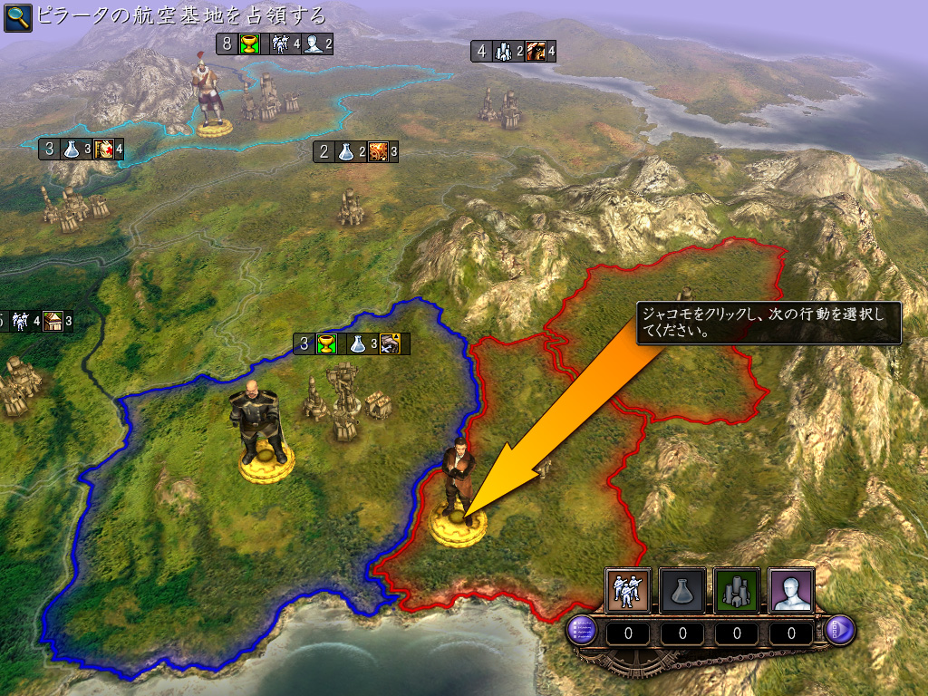 ゲームに勝利するためには,敵のすべてを破壊し尽くす必要はなく,首都を占領すればよい。ただし当然ながら首都は防備が固いと予想されるため,どの都市から順に攻略していくかという戦略は重要になってくる。