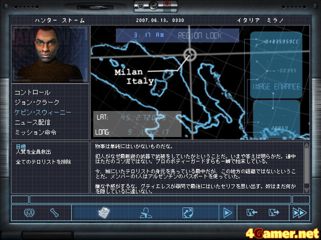 状況説明画面。ストーリーはとくに作戦には関係ないが,いつもながら最新国際情勢を反映した内容が大人っぽい |
