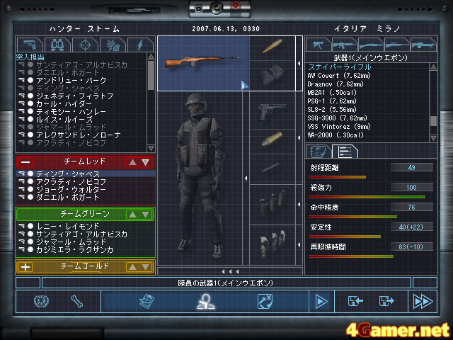 基本的にAI対AIの撃ち合いが多く,味方が強すぎるとプレイヤーの出番がなくなるので,こういうゲームバランスになったと思う。だが気がつくと自分一人になっていたり,小説では重要な役柄のディング・シャベスまでが「マンダウン!」で,あっさり死んだりして,なるほど対テロ特殊作戦の世界は冷酷だ。隊員が死亡すると当然次のマップでは使えないので,筆者のように終いにゃ「アサルト予備」隊員ばっかりじゃん! てなことにならないためにも,隊員の損耗には気をつけたい。