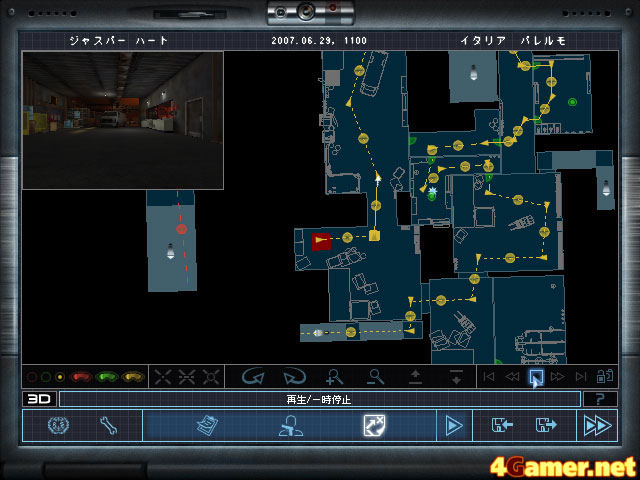 とはいえ,病的な方向音痴である筆者は,いつもここでつっかえる。経路だけではなくタイミングの取り方も重要だし,建物が多層階構造だと,自慢じゃないがマップの上でさえ自分がどこにいるのだか分からない。しかし,そういう困った人のためにはあらかじめお手本プランが用意されているので,それをそのままロードして使ったり,適宜改良して使用すればいいのである。どうもありがとう。また進入経路に沿って,その場所がどういう景色なのかカメラで見ることもできるので,そうした情報を十分頭に叩き込んでおくべきである。でも,あれ,ここどこ?