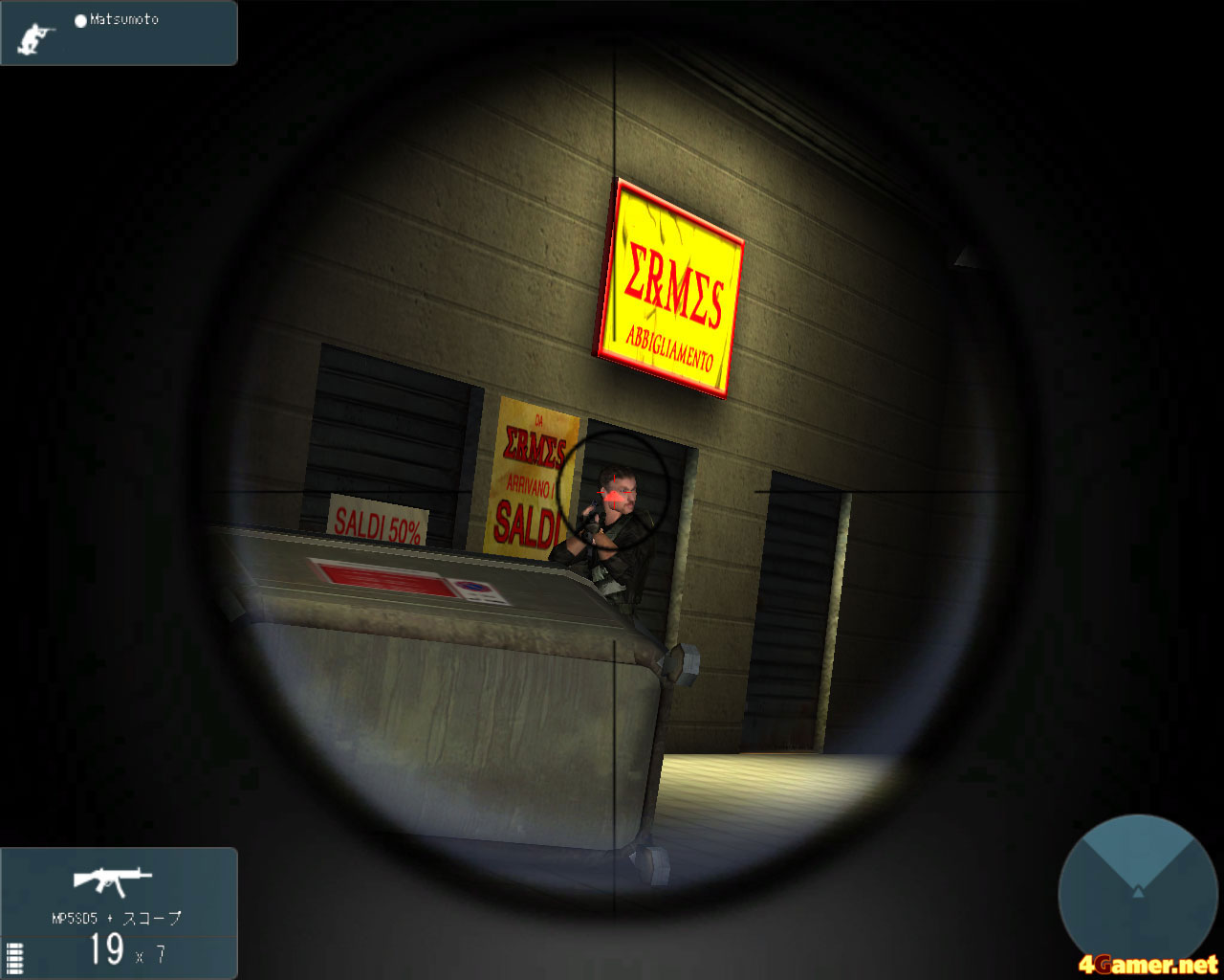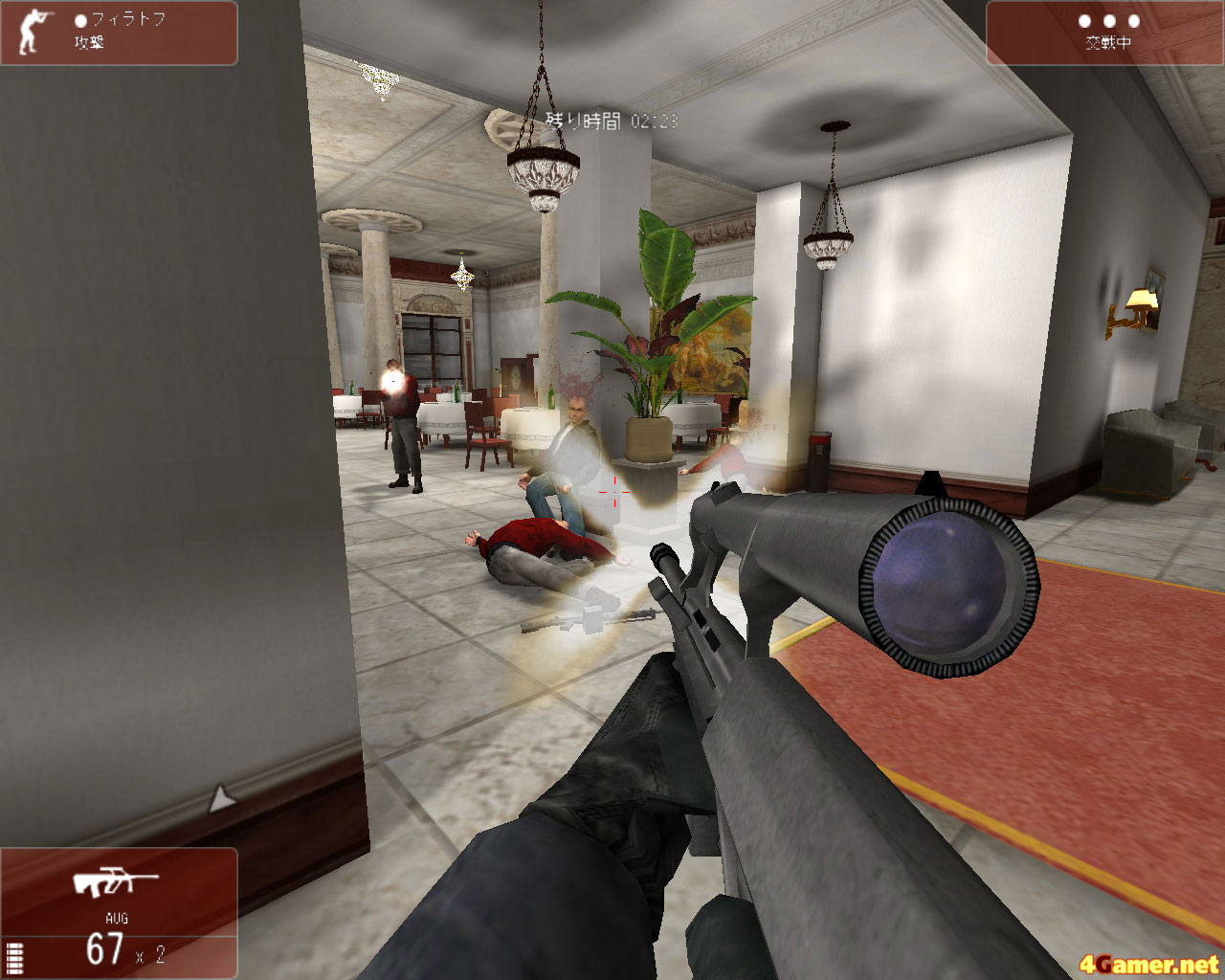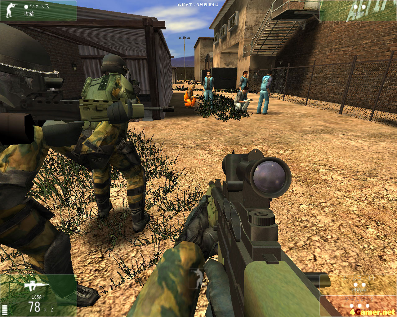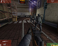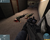 | アルファ,ゴーゴーゴー! 照明を撃って暗闇を作ったりはできないが,グラフィックスや人物のモデリングはとくに不満のないレベル。マップは結構広く,思わぬところから撃たれたりするので,かなり緊張する |
