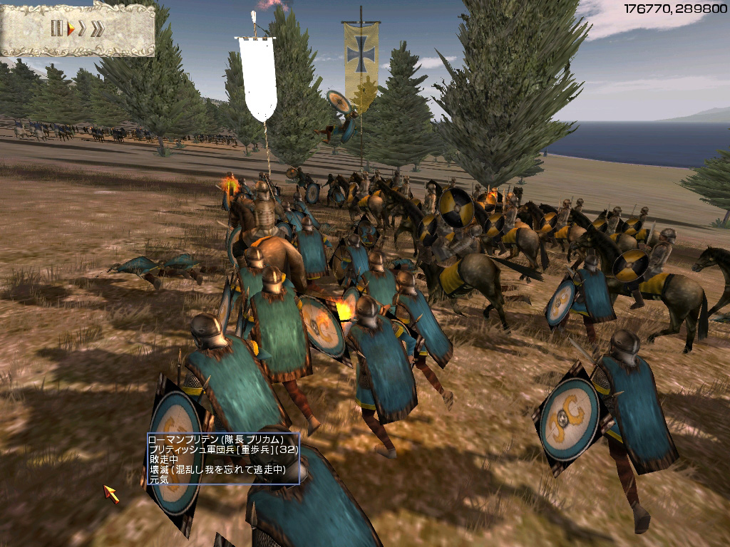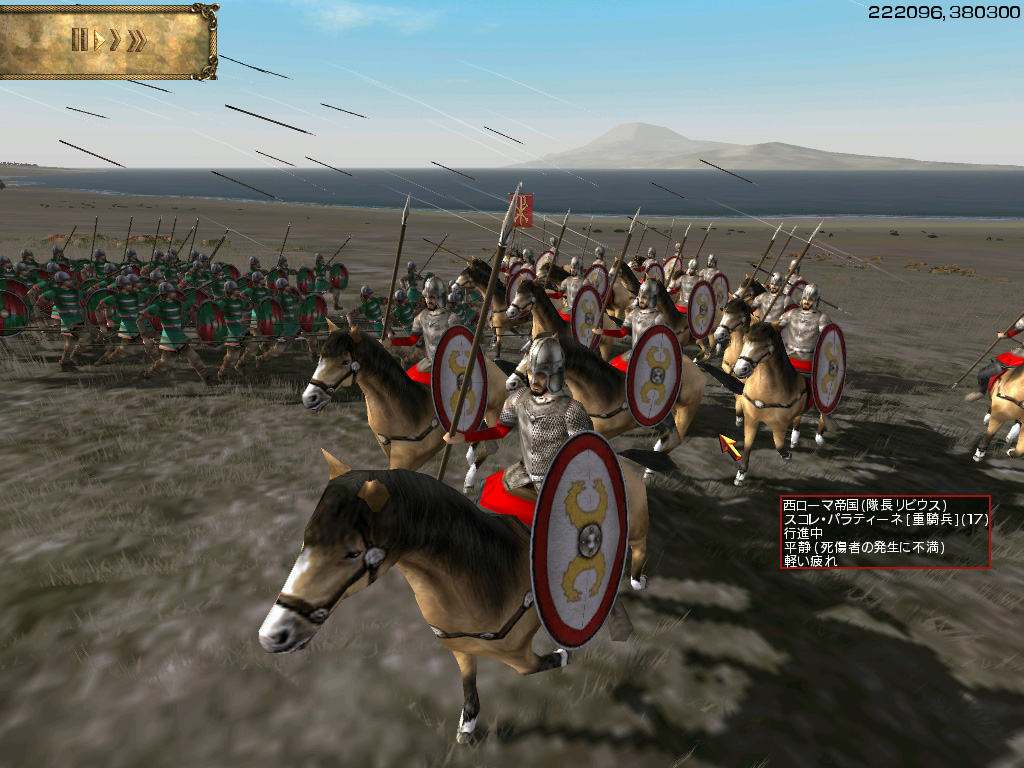 今回セガから発売されたパッケージは2種類あり,一つは拡張パックのみのパッケージである「ローマ:トータルウォー 拡張キット バーバリアン・インヴェイジョン」。こちらは以前にコーエーから発売された「ローマ:トータルウォー」に対してインストールできるもので,他社の製品に適用可能な拡張パックのリリースというのはかなり珍しいと思う。もう一つは本編と拡張パックがセットになった「ローマ:トータルウォー 日本語完全版」である。この拡張パックリリースによって本作に興味を持ったという人はこちらを購入すれば,本編&拡張部分の両方が即座に楽しめるわけだ。