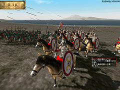 | 戦闘パートでは,戦い方次第でこちらよりも多くの数の敵を撃退することも可能だ。とくに騎兵の操作は非常に重要。効果的な場所に効果的なタイミングで突撃させれば,かなりの戦果を挙げられる |