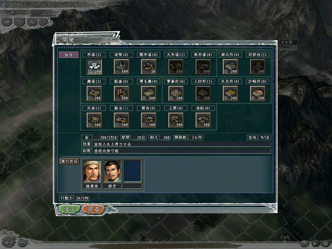 「人材探索」,「武将登用」に必要な行動力が半減する。また,「技巧研究」にかかる期間が短くなる。