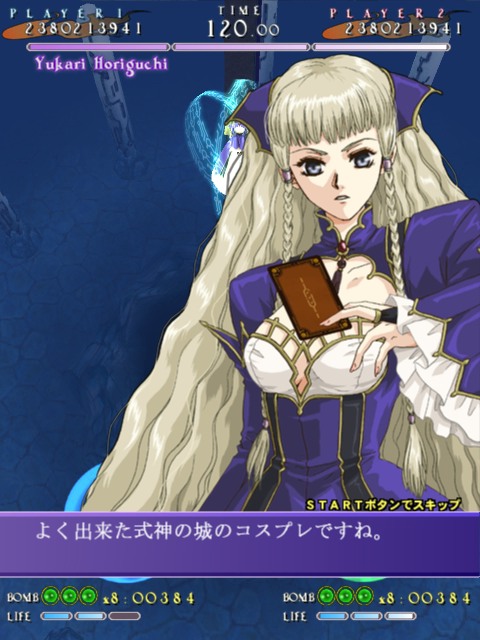 「式神の城II」は,まずアーケード版でデビューし,プレイステーション2・Xbox・ニンテンドーゲームキューブ・ドリームキャスト版に続いてPC版が登場した。自分のプレイを再生できる[REPLAY]モードや広汎なカスタマイズ機能,ディスプレイをローテーションさせることでアーケードライクな縦長画面が実現することなど,独自のメリットをふんだんに備える。