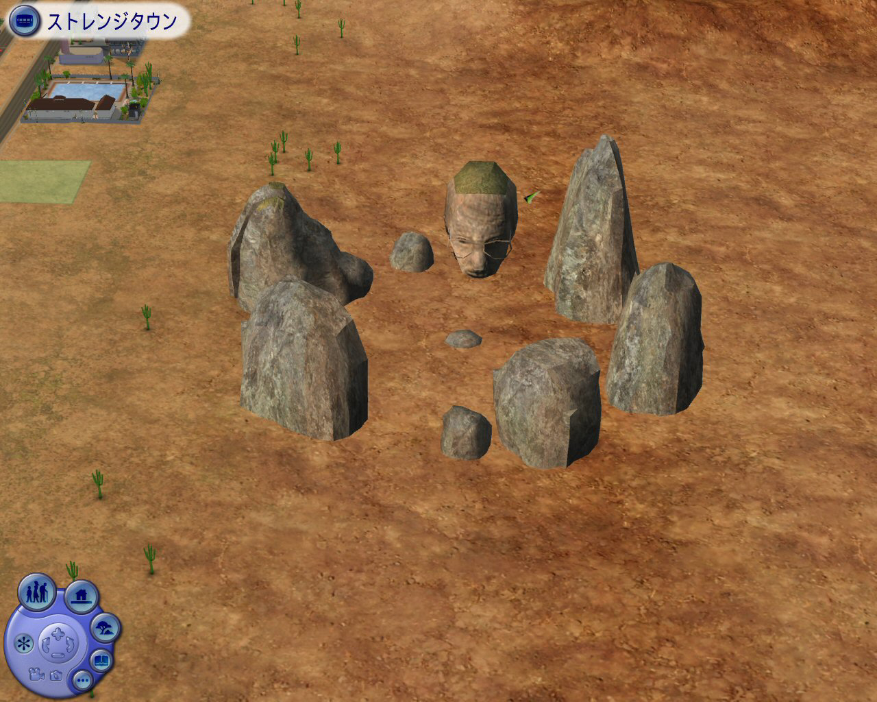| ウィル・ライト氏にそっくりな巨大岩。氏は「シムシティ」「シムピープル」を始め,異色のゲームを次々に送り出している奇才。とはいえ,あのアリンコになって裏庭でどうこう,ってのはちょっとアレだったなあ,やっぱり |
