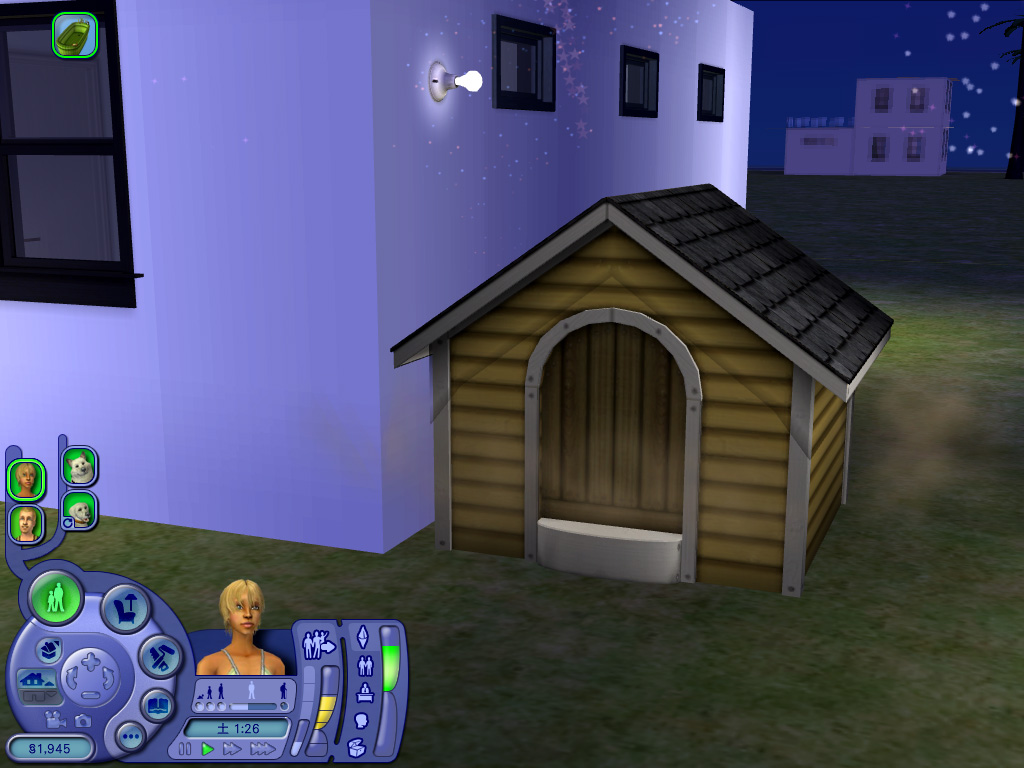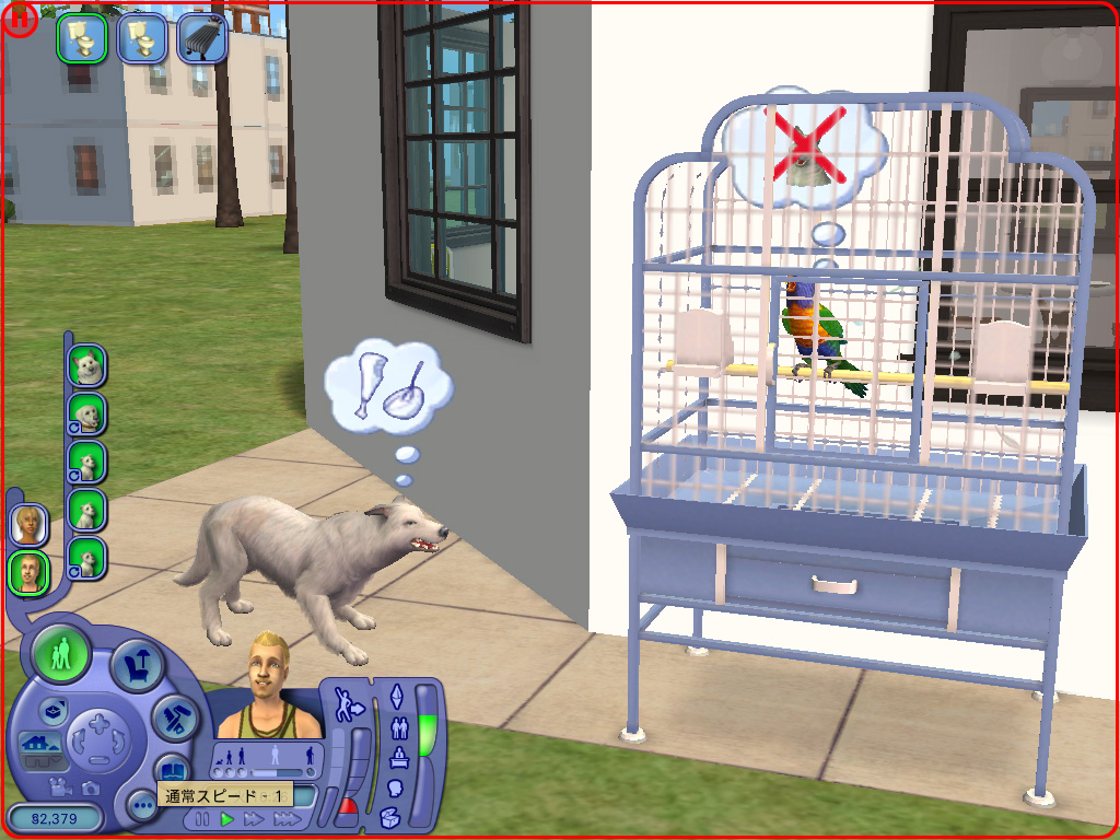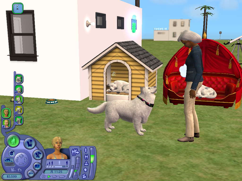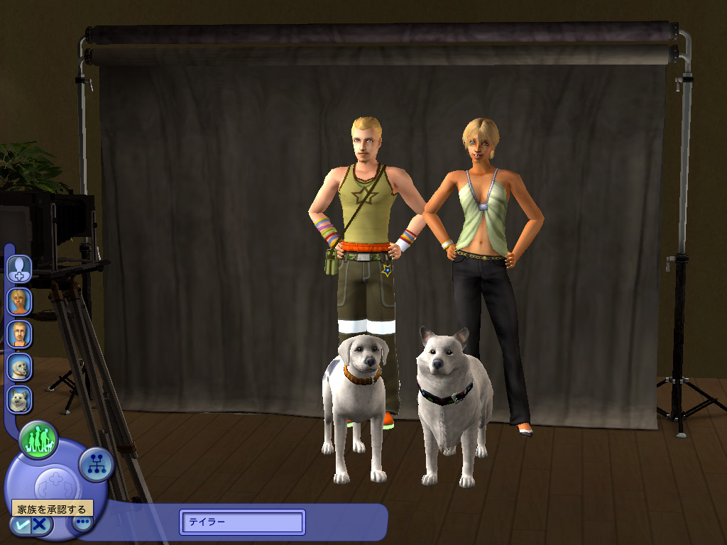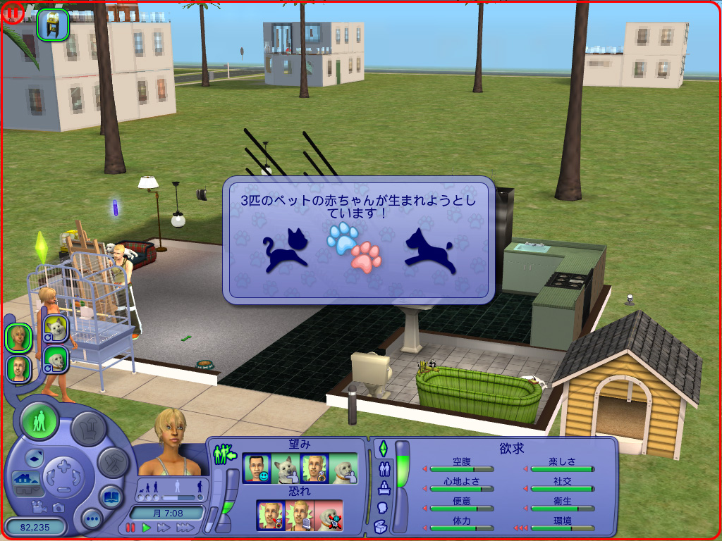何度も性格の違う犬同士を飼育した結果,ようやく飼い主とペットの,そしてペット同士の友好度が高いペアが出来上がった。シム人ならばベッドで「ウフフな事」をすれば子供が出来るように,ペット同士の場合でもベッドの代わりに「ペットハウス」を買ってやれば準備万端。あとはどちらか片方のペットに「子犬(子猫)を作る」の命令を与えればよいわけだが,ここでペット同士の仲が悪いと,「フーッ!」と威嚇されて終わってしまう。