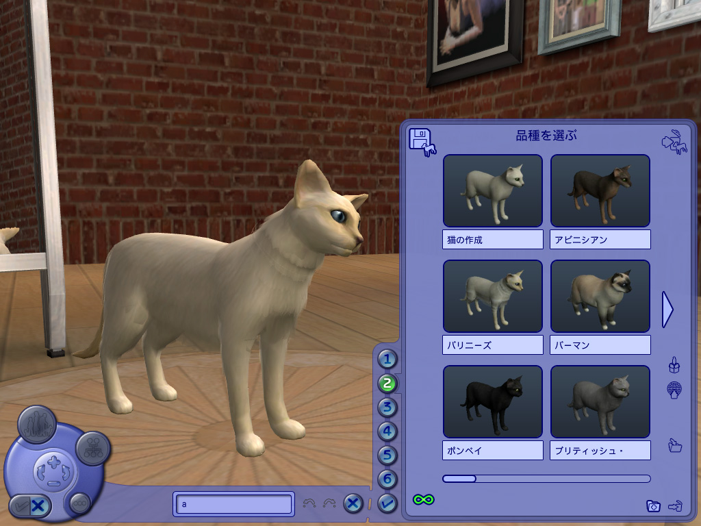 ペットの作成についてだが,犬や猫は,シム人を作成するときと同じような方法でカスタマイズが可能だ。名前と性別,年齢を決めたら,次はペットの種類選びで,犬なら52種類,猫なら31種類が用意されている。どのタイプも顔つきや仕草が実にリアルで愛らしく,選ぶだけで相当の時間を費やしてしまうことだろう。