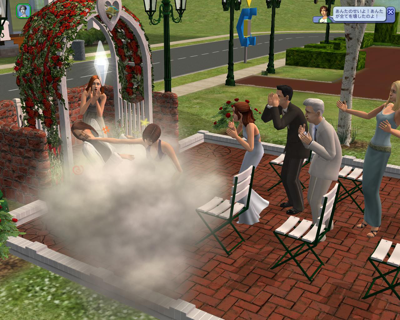 | ミッキーの結婚式に乱入して大暴れするライリー。直情径行にしてこのバイタリティがシム人達の持ち味。見ていて大変励まされる。いいぞ | 第三の男,ディランの登場で揺れる女心。私の目から見る限り,どっちも大したことない男のように見えるのだが,惚れっぽいライリーである | ライリーのストーリーを4章までクリアすると,ヴィンセントのストーリーがアンロックされる。ライリーの方が目標が多く,ビギナー向きだ |