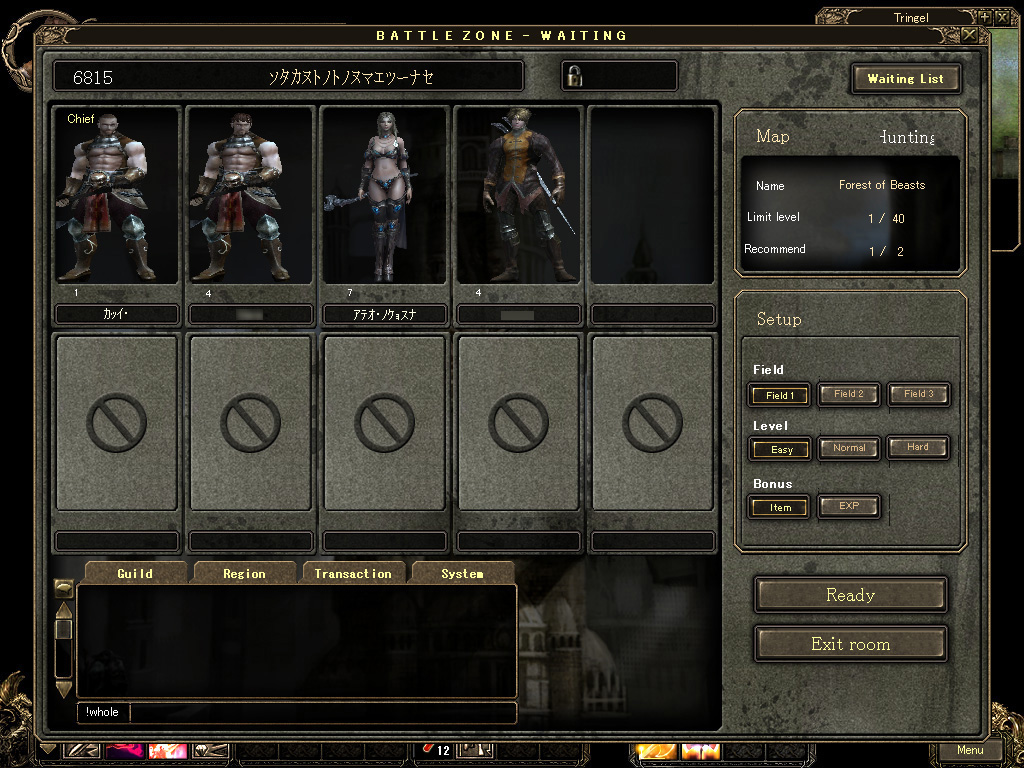 ゲームの基本的な流れとしては,自分の実力に応じたBattlezoneを生成(あるいは参加),その中で冒険し,レベルアップに励むことになる。とはいえ現時点では,Battlezoneの「Mission」「PvP」の機能が実装されておらず,参加者はHuntingのみを延々と繰り返すしかなかった。実装されているBattlezoneが2種類という点も含め,ちょっと現時点では,ゲームの全容を把握することは難しいというのが正直なところである。