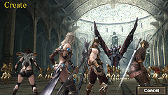 次に,本作のキャラクター育成関連のシステムを説明しておこう。最初のキャラクター作成時に選べるクラスは,「バーサーカー」「ドラゴンナイト」「ヴァルキリー」「エレメンタリスト」の4種類がある。性別はクラスに固定されており,前二つが男性,後二つが女性となっている。キャラクターはBattlezoneでの戦闘を経てレベルアップし,そのとき得られるボーナスポイントを各項目に割り振ることで,さまざまな方向へと個性が育っていく。