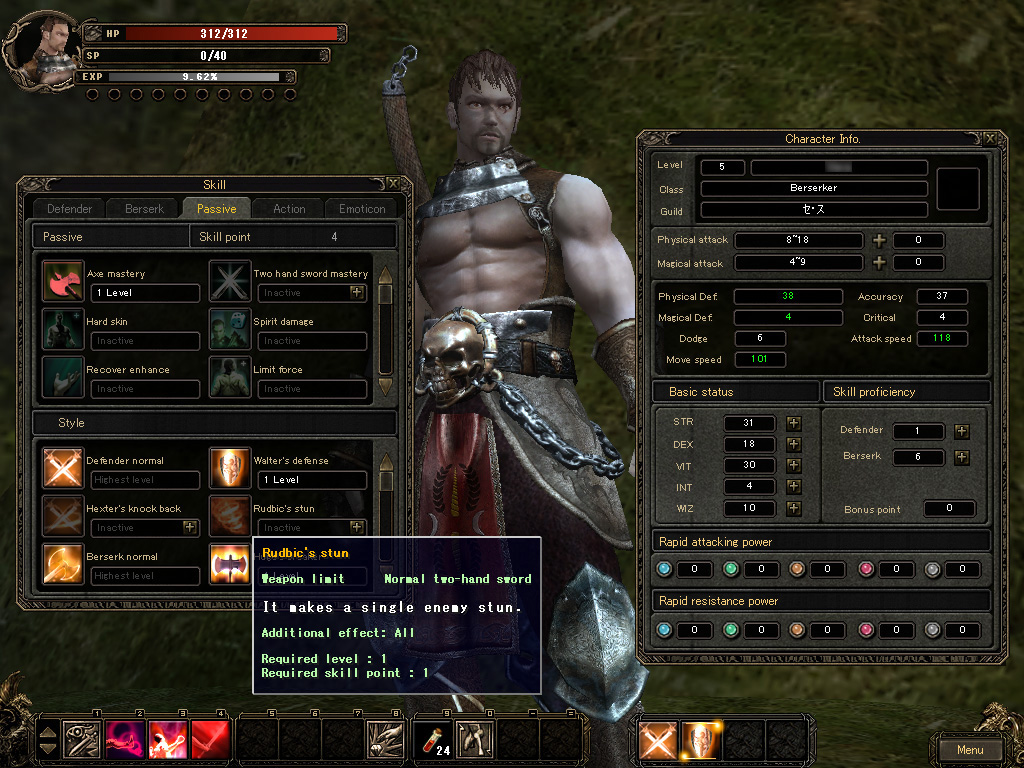 | バーサーカーはゲーム中では,最もオーソドックスなクラス。スキルも単純明快なタイプが多く,広く受け入れられそうだ | アクションRPGなので,ゲームはスピーディに展開する。これらの両手武器を豪快に振り回す姿は大迫力だ | Skill Proficiencyを必要としないスキルの中では,各種武器のマスタリーに注目。ゆくゆくは,斧か剣のどちらかに特化することになるだろう |