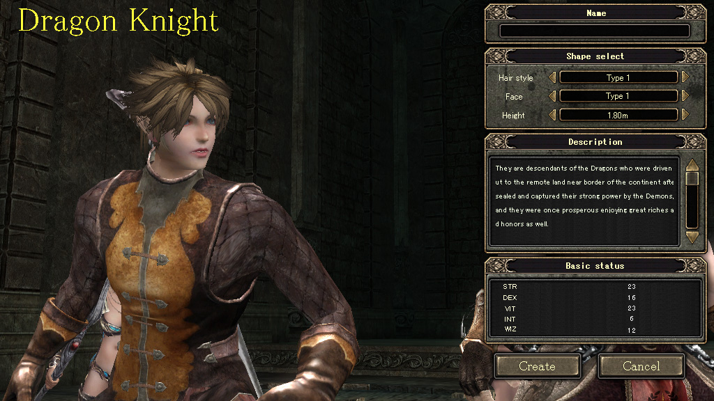 | キャラクター作成時の画面。この「Basic Status」の初期値をほかのクラスと見比べれば,大まかな方向性は理解できるだろう |
