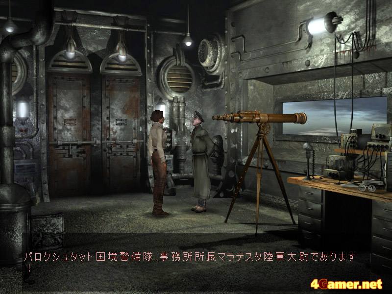 うーむ。しょっぱなからムード抜群。哀調をおびた音楽。しのつく雨。絵に描いたような(絵なんだけど)古ぼけた田舎町。 旅ものアドベンチャーといえば,シベリアの直前に一世を風靡した「The Longest Journey」があるが,そういや,あっちはついに日本語版が出なかったなあ,ってのはどうでもいい話なんだけど,シベリアのゲームシステムは,そういった"洋ものアドベンチャーゲーム"の中では最も簡単なほうで,基本的にマウス一つで何でもできる。画面上,移動できたりオブジェクトを拾えたりするところではアイコンが光ったり形が変化して教えてくれる。そこでクリックすれば画面が変化したり,ケイトがオブジェクトを拾って懐にしまったりするわけだ。超簡単。 ストーリーとデザインを担当しているBenoit Sokalは――ここは一つ"ベノイト"などと読まずにフランス風に"ブノワ"とお呼びしたいところだが――有名なコミック作家で,ゲームに進出するのが今回が初めてらしい。独特な世界観を持っていて,登場するすべてのオブジェクトはどれも見事に統一されたタッチで精密に描かれ,各場面にはゆるみがない。出てくるからくり人形や,ロシア製の機械類など,ひと味違ったレトロ感が漂っていて個性的だ。 もっとも,本当にロシアやシベリアに在住している人には,ゲームに描かれている世界は現実とかなり違うと感じるかも。たぶんそうだろう。辺境地帯に見上げるばかりの城壁が並び,ロシア軍の士官がコサック兵を見張っているとは思えないし,ロシアの学生が,制服を着ているとも思えない。日本人がシルクロードや西域に妙な郷愁を覚えるように,ヨーロッパ人にとってシベリアはある種の感情を喚起するのだろう。 意外な展開の物語,感動シーン,これぞ新世代の正当派アドベンチャー