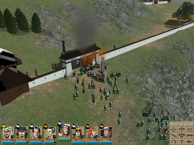 | 最初の布陣が勝負に大きな影響を及ぼすので,陣形は慎重に選ぼう。余裕があれば別働隊もぜひ配置したい | 難度は高めで,最初は敵と同数の兵士では苦戦するかも。突撃のタイミングなどが分かってくると勝てるようになる | 攻城戦は門をめぐる攻防がカギ。高低差のある城だと,内側からの矢の雨の前に苦戦するのは必至 |