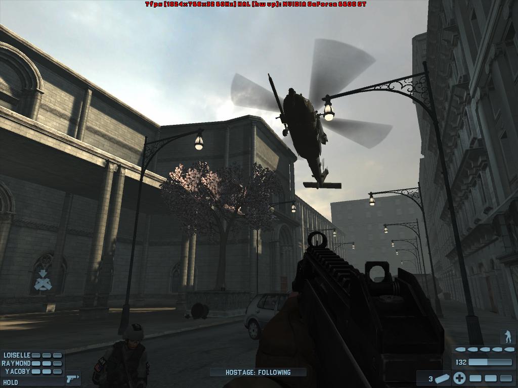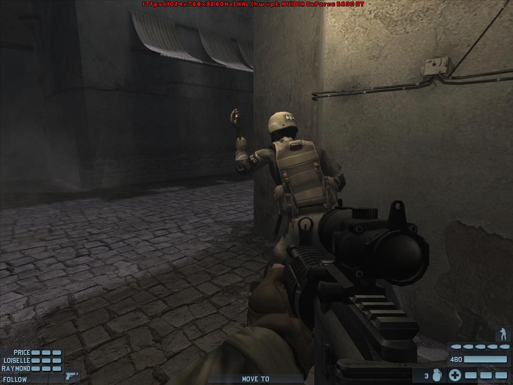 とくに味方兵士。キチンとフォーメーションは守るしプレイヤーの命令は聞くしと,実際にいたら好感が持てそうな人ばかりだが,少々素直に過ぎる。ドア前で突入命令である「オープン→フラッシュ→クリア」を設定して,自らは別のドアで待機。ズールーコード(実行命令)を発行して,「GO! GO! GO!」と部屋に飛び込んでみたら,仲間はドアに引っかかっていて自分一人きりでした,なんてこともある。「お,やっと入ってきたな」と思ったら,交戦中にプレイヤーの射線に飛び込んできて「フレンドリーファイア!?」と,こちらを仰ぎ見る。アグレッシブさは買うが,もう少しだけ自我があると嬉しい。
