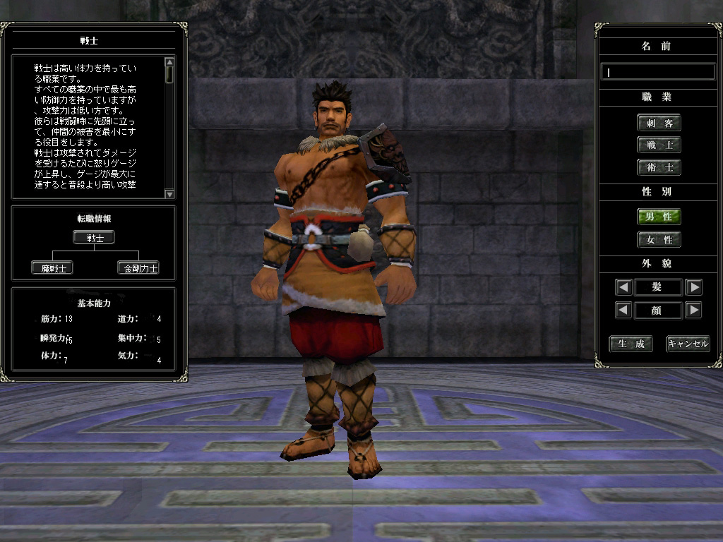 | 対人戦をウリにしたMMORPG「天道オンライン」。美形や可愛らしいキャラがもてはやされる昨今,敢えて強面のキャラを選択できることも(ある意味)特徴だ |