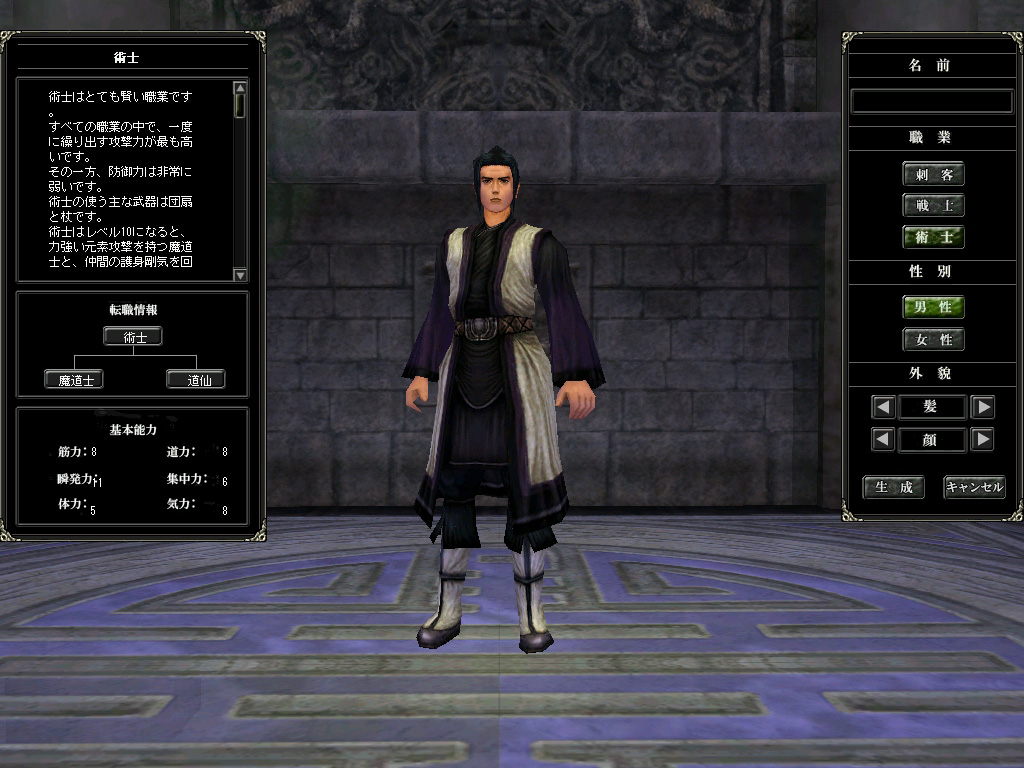 各種の魔法を駆使する職業。二次職は,攻撃魔法とデバフに特化した「魔道士」と,ヒーリングおよび状態回復とバフに特化した「道仙」。
