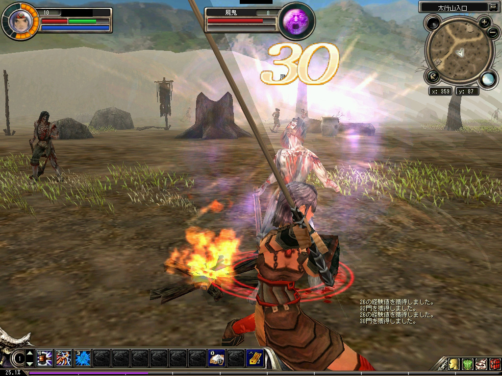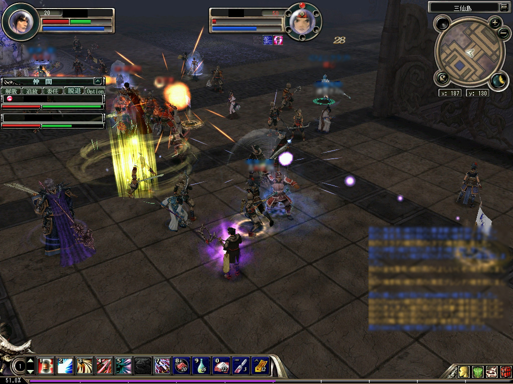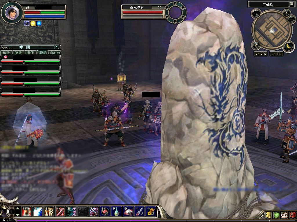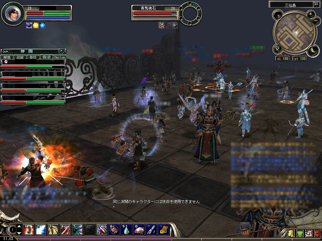 | 中立地帯にはアイテムを使ってテレポートできるが,モンスターのレベルはかなり高い。無理して行く必要はないだろう | 「比武」は,プレイヤー同士の承諾があれば町の中でも行える。くれぐれもほかのプレイヤーの迷惑とならないように気をつけたい | イベントの国家戦で,三仙島の各陣地に配置された「魂石」。攻めるだけでも守るだけでも勝利することはできない |