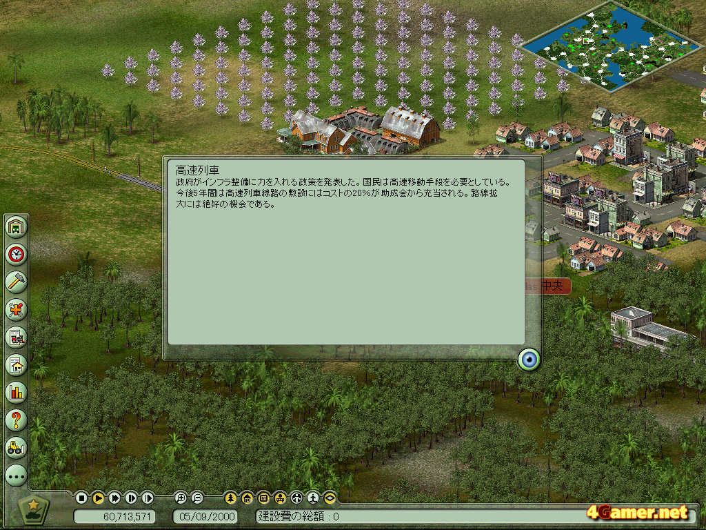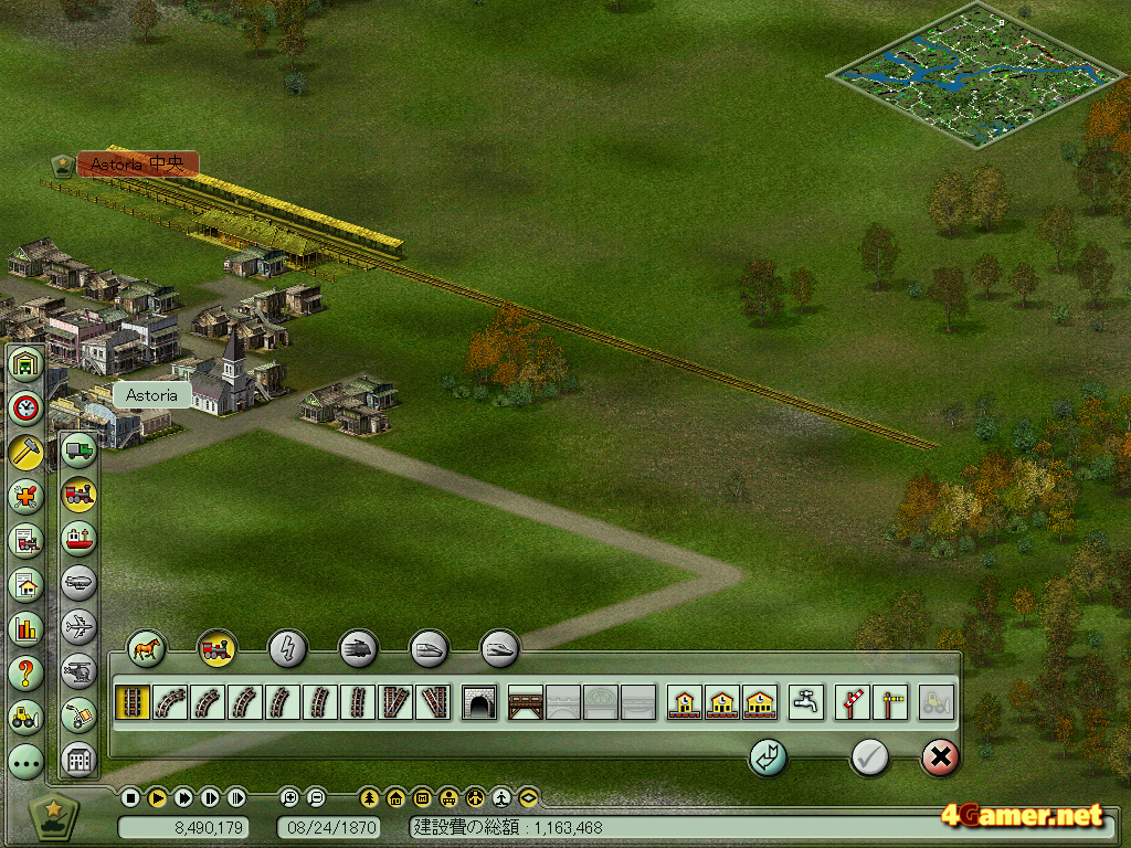 ただし,本作をプレイするにあたってどうしても覚えておいてほしいこともある。それはこのゲームのインタフェースが「とんでもなく出来が悪い」ということだ。まず各機能がメニューのどこに格納されていて,どのボタンを押せば次の設定に進むのかといったことが,独特かつ複雑なうえ説明が極端に不足している。鉄道の路線を敷くにしても,起点と終点とクリックするだけでOKといった簡単設定の概念が「まったくない」のか,いちいち駅と駅の間隔を測りながら路線の敷く作業が「とんでもなく面倒くさい」のである。筆者のプレイ時にマニュアルがなかったせいもあるのだが,鉄道の路線をつなぐときは一筆書きの要領でなければ駅間をつなげないと思って大陸上に大環状線を築き,のちに「Enterキー」を押しながら駅を設置すれば必ずしも駅間をつなぐ必要はないことを知ってア然としたものだ。