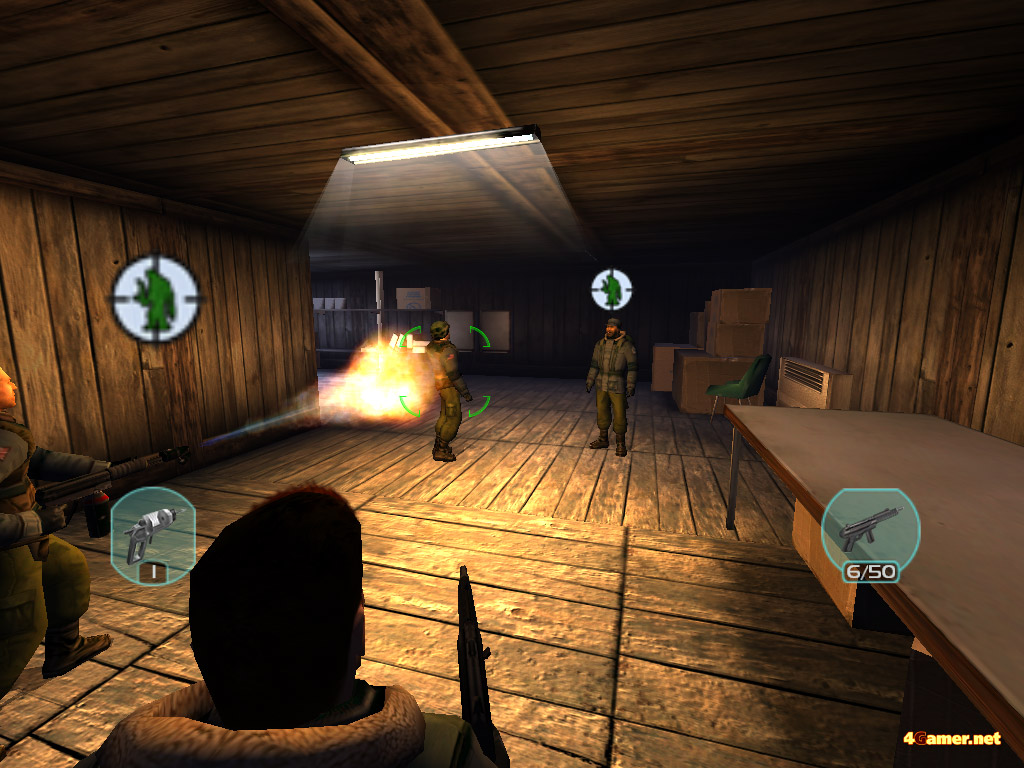 また逆に,チームメイトがプレイヤーキャラクターをどの程度信用しているか,といったパラメータも設定されている。仲間を撃ったり武器を取りあげたりして信用を裏切ると,こちらの命令を聞かなくなるばかりか,ついには攻撃されるようになるのだ。いったい誰がエイリアンなのか? こいつは信用してもいいのか? こいつには信用してもらわないと先に進めない……。といった風に,ただ単にエイリアンと戦い,クリアアイテムを見つけて先へ進むだけといった単純なアクションアドベンチャーに終わっていないのである。