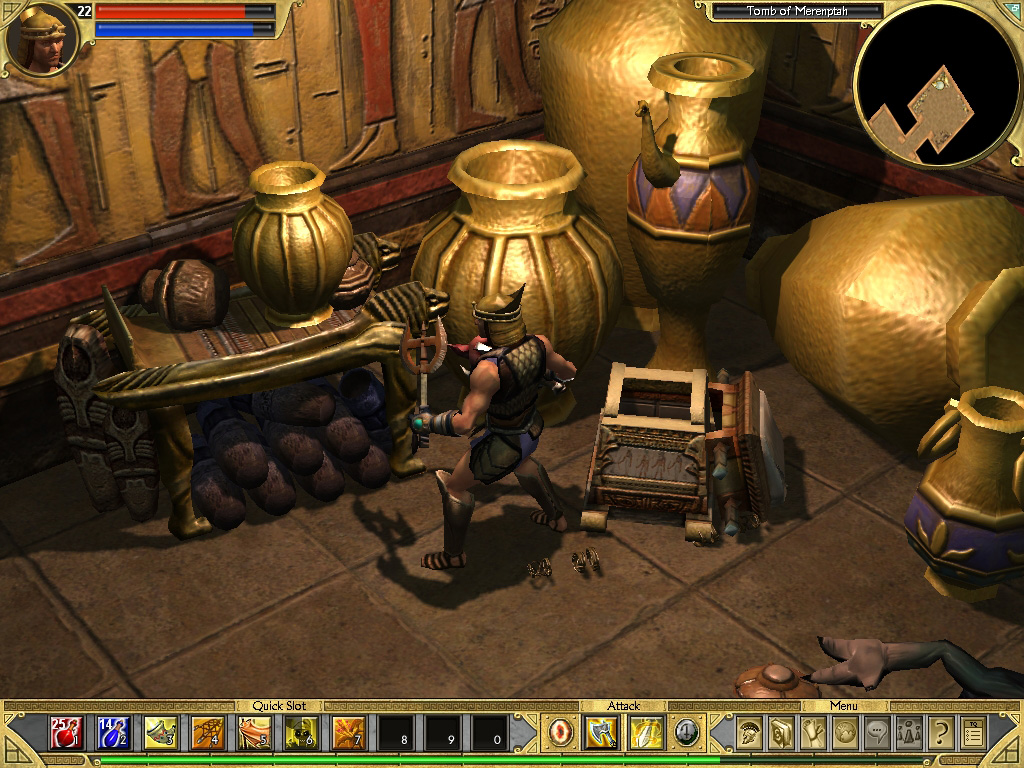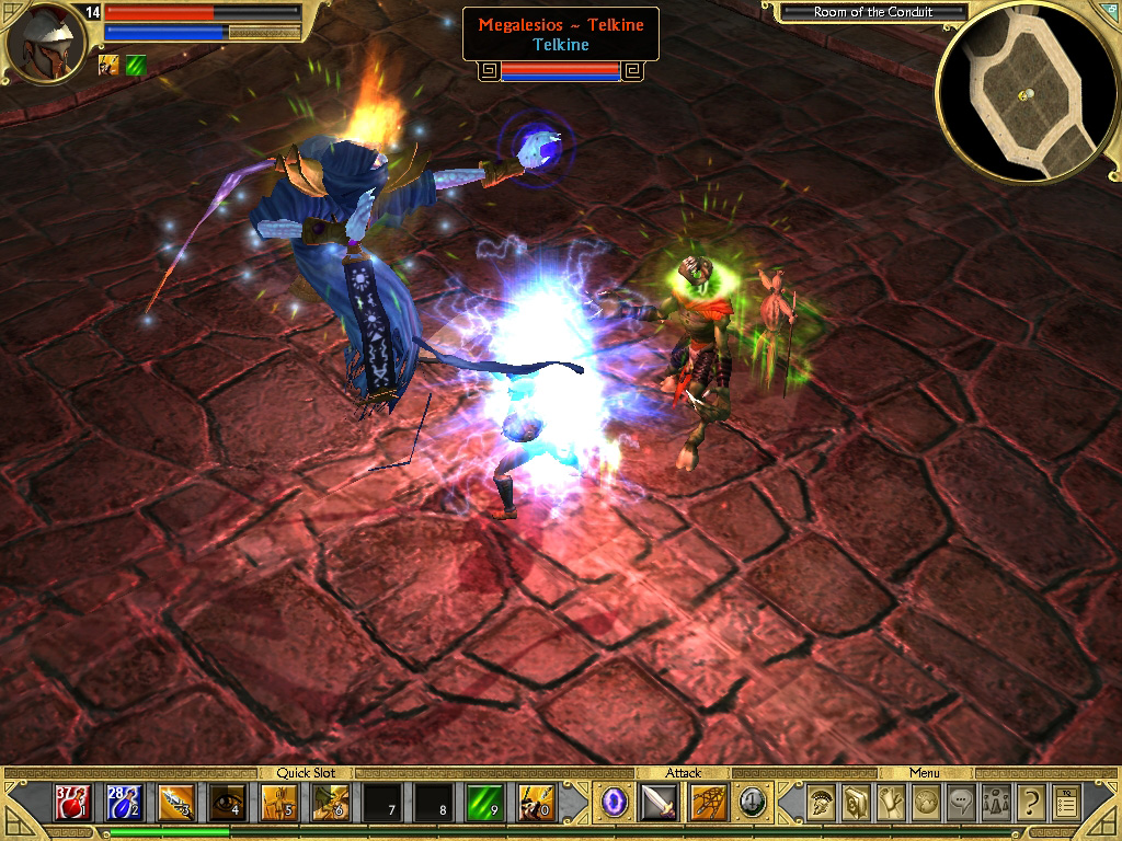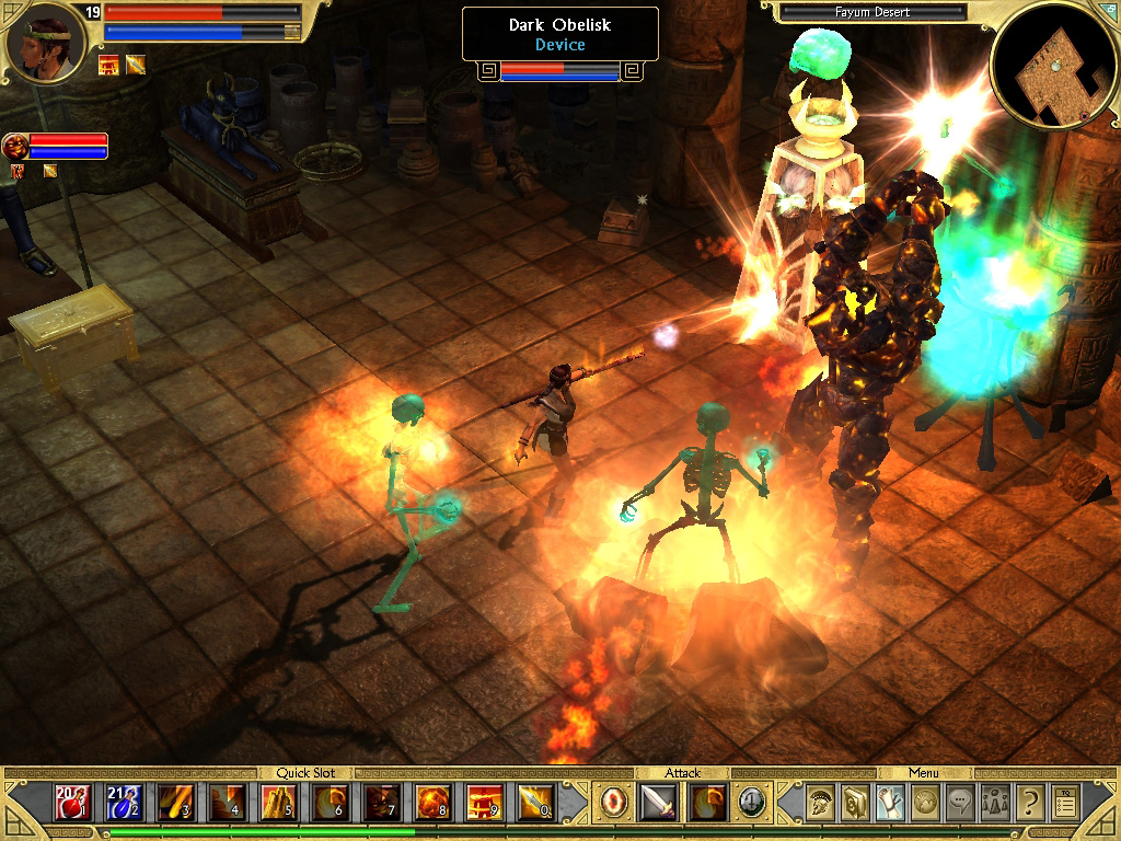 それだけに,いっそのこと完全にシングルプレイを前提として作ってほしかったなと,個人的には(極論かもしれないが)考える。例えば,キャラクター間でアイテム移動を行う手段が,マルチプレイを経由するしかないのは不満である。せっかく何人ものキャラクターを育てたくなるゲームで,魅力的なマジックアイテムがたくさん登場するのに,中途半端なマルチプレイの仕様が足を引っ張ってしまっているように思えるのだ。このあたりの環境整備は,現在制作中と噂される拡張パック「Titan Quest: Immortal Throne」に大いに期待したい。