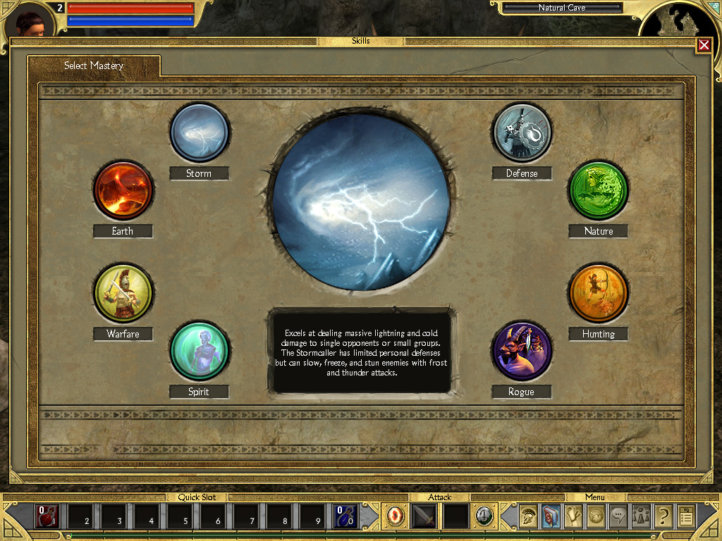 マスタリーのうちの一つ「Storm」は,基本的にはマジックユーザー系の性能で,スキルにはそういったタイプのものが揃っている。しかし中には例外もあって,「Heart of Frost」は武器に魔法をエンチャントして敵の移動/攻撃スピードを下げるという効果があり,ファイター系との相性が良いスキルだ。またほかにも,「Storm Surge」は敵から攻撃を受けたときにスタンを伴ったダメージをカウンターで与えるもので,これもファイター系にとっては実にありがたいスキルである。