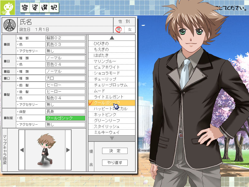 | キャラメイクでは,お試し版になかった要素(髪の色や口の形など)が追加されていた |