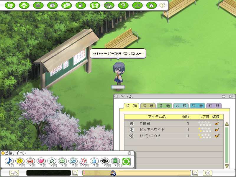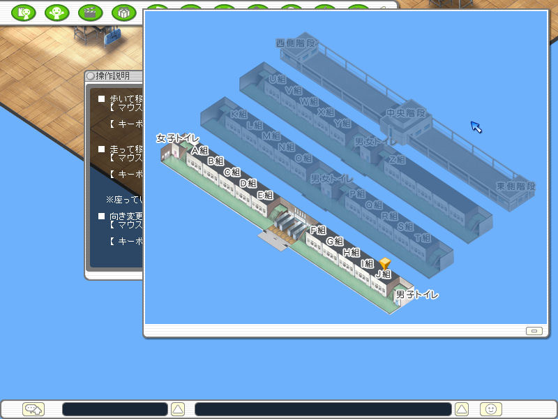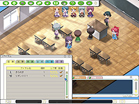 校内は広いが,MMORPGのように同じ背景の続く広大なフィールドではなく,建物や部屋単位で区切られたマップ構造となっているため,校内を見渡せるマップを別ウィンドウで開いていれば,迷うことはまずないだろう。校内にある各施設は,かなり細部まで作り込まれており,校庭の片隅にある飼育小屋にすら入れるのには驚いた。