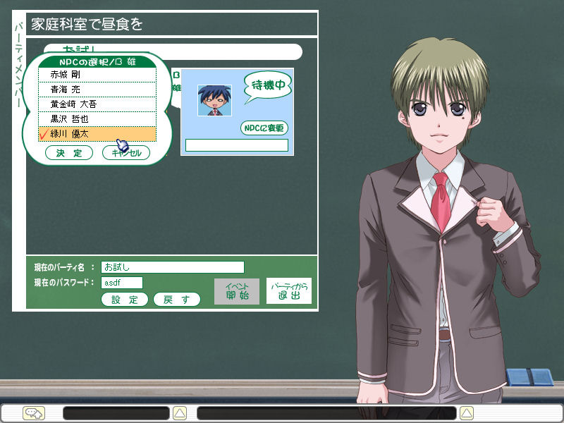 ゲーム内容は,ときめきメモリアルっぽいアバターキャラで,ほかのプレイヤーとチャットをしながらクイズ(授業)や部活(RPG風の戦闘)に励むなどして,高校生活を楽しもうというもの。ほかにも,プレイヤー達が役を演じるアドベンチャーゲームといった趣(おもむき)の"ドラマイベント"など,いかにもときめきメモリアルっぽい仕掛けも用意されている。