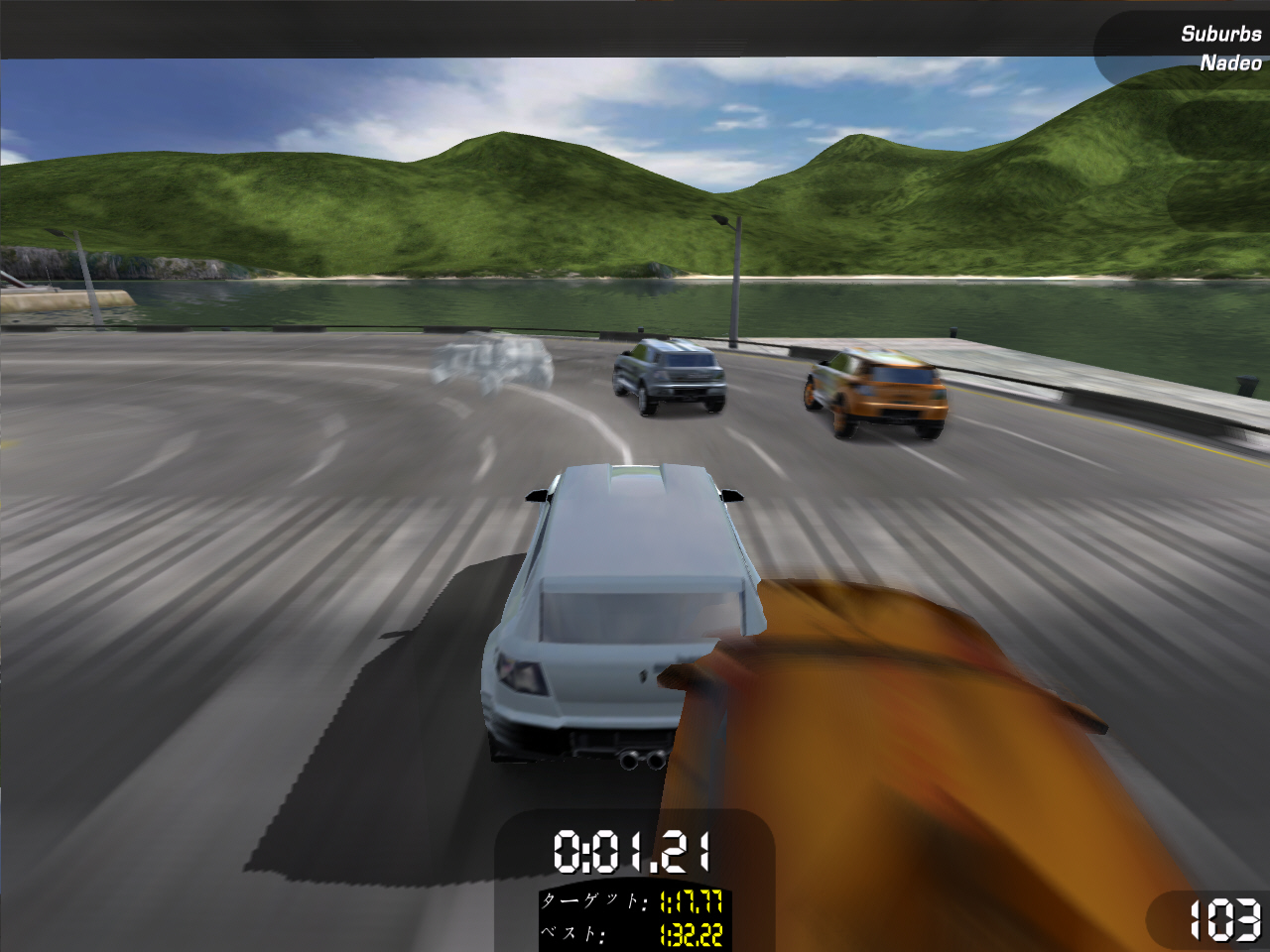 ぶっちゃけ,あまりにもハイスピードすぎて,ちょっとした起伏でコースアウトや壁に激突というシーンもかなりあり,車体のコントロールに「運」や「まぐれ」に頼る部分が多く含まれている。しかしそれは,車のゲームに長けていない人でも,気軽にプレイできることも意味するだろう。まあ,なんにせよ,興味のある人は,4GamerにUpした体験版を試して,あらぬ方向へ吹っ飛ぼうが,壁に激突しようが,ひっくり返ろうが,海に落ちようが何でもござれの豪快なレースをとりあえず味わってほしいのである。