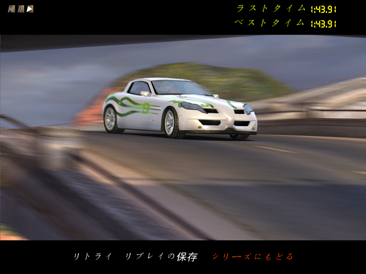 本作をプレイすると,その圧倒的なスピード感に驚かされる。普通に走っていてもF1カー並の時速300kmオーバーとなり,美しく描かれた風景を見てる余裕などはまったくなく,もったいない話である。コースによっては,エフゼ……,えーと,まあ,そういうゲームで見たような黄色や赤色の矢印ゾーンが設置され,そこを通過すると,どんな仕掛けか知らないが,一気に400km/h〜900km/hオーバーの世界へと急加速! 車のコントロールに精神を集中しないと,真っ直ぐ走らせることもままならないほどだ。いやー,このスピード感はクセになりますよ。