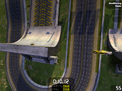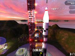 いずれにせよ,声を大にして言いたいのは,やはりトラックの作りの面白さだろう。登場するすべてのトラックはトリッキーでアクロバティックでエキセントリックで「あるか普通?」なものばかり。例えば,ビルの間を縫って作られた高速道路を走り抜けるのかと思ったら甘く,突然,道路が途切れてジャンプし,隣のビルの屋上へ着地。そこからダイブして道路へ落下し,コースへ戻ったったらあなた,先の見えない坂道を駆け上がり,そのままジャンプするのかと思いきや,実は下った直後に直角右コーナーが待ち構えていたなど,「うわ〜」と言ってしまうトラックが大盛りで用意されている。