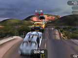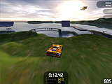 とにかく起伏やジャンプ台を使って大ジャンプするシーンが多い。ハイスピードなので滞空時間が長く,普段「打たれたゴルフボールってどんな気分なんだろう」と思っている人の疑問を氷解させてくれるはず。とにかくぶっ飛ぶ,ぶっ飛ぶ。ジャンプ時に真っ直ぐ飛べて,着地地点が真正面に見えてくればあなたは幸せ者だ。走行スピードが速いため,真っ直ぐ飛び出すことさえ難しく,着地すべきコースから外れて崖下へ転落,海の中へジャポン! となることが多い。スタントマンがミスったときはこんな気分になると思う。また,気持ちよく飛んでいたら,通過すべきチェックポイントやフィニッシュラインを飛び超してしまったり,トンネルの天井に当たってタイムロスなんてこともあるから,調子に乗って飛び回るのも考えものだ。