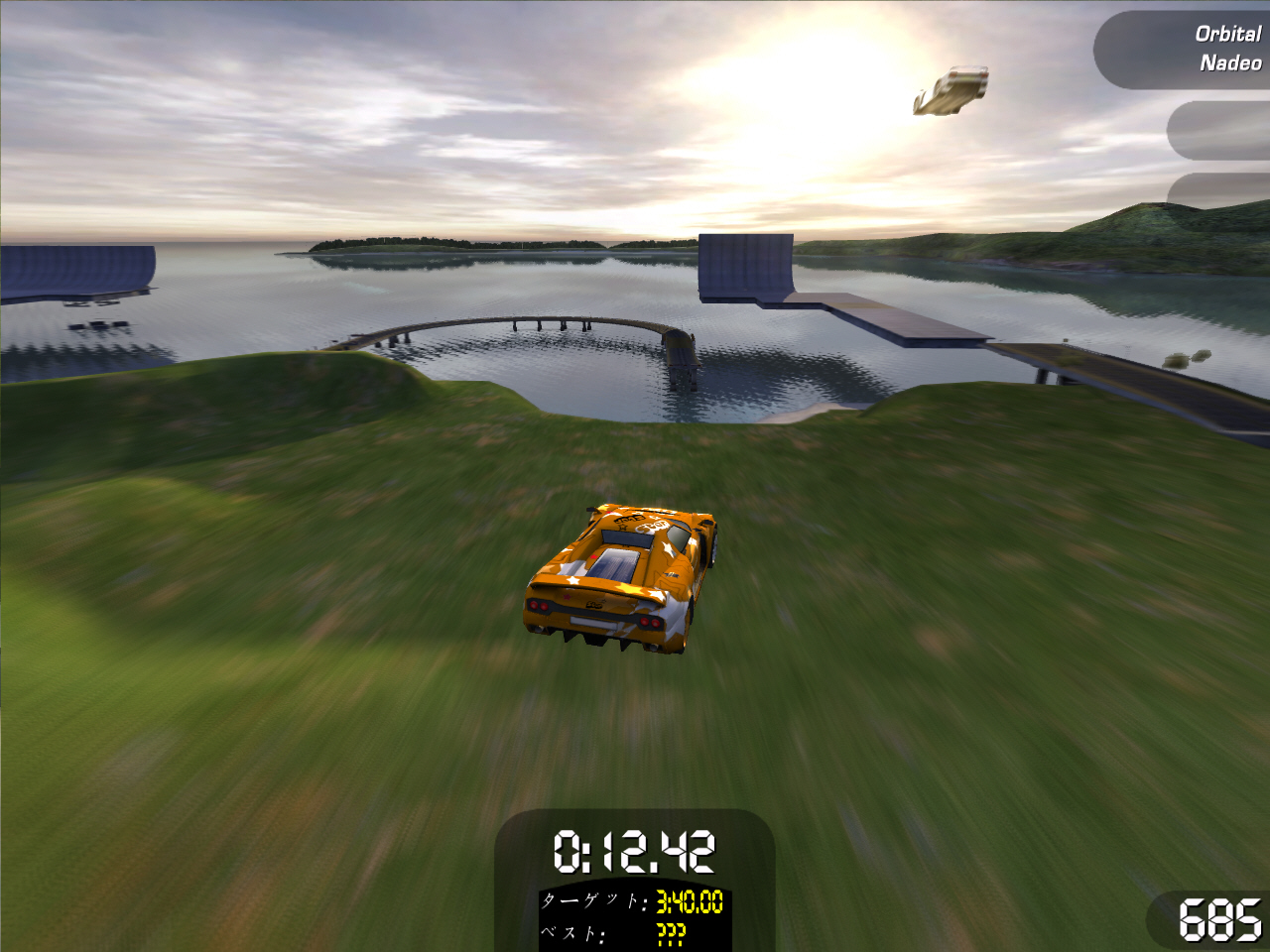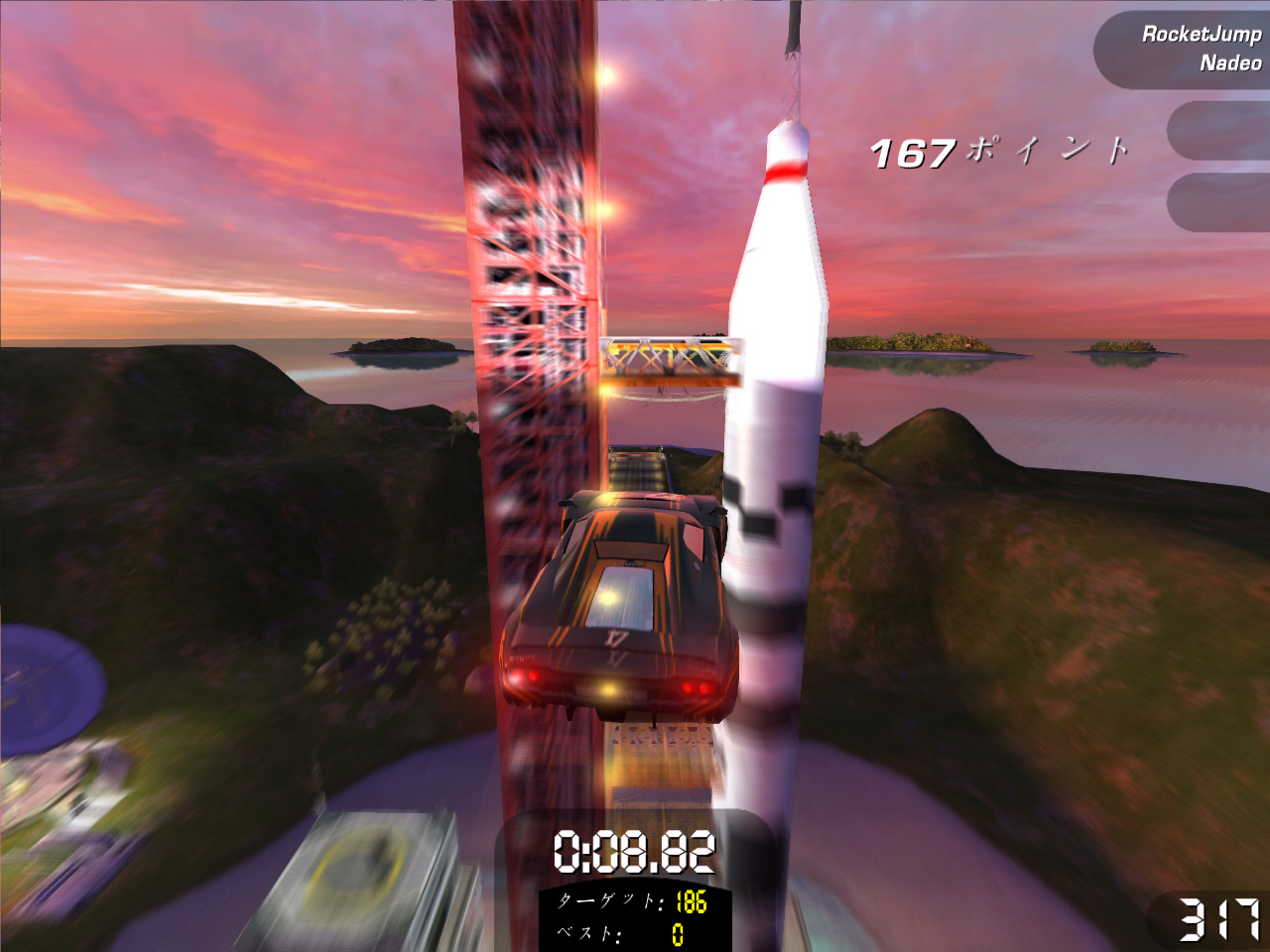 | オフィシャルキャンペーンにはロケット発射台とロケットの間を大ジャンプですり抜けるようなチャレンジがあるが,トラックエディタを使ってそれにも負けない度肝を抜くものを作れてしまうのが本作の魅力の一つだ |