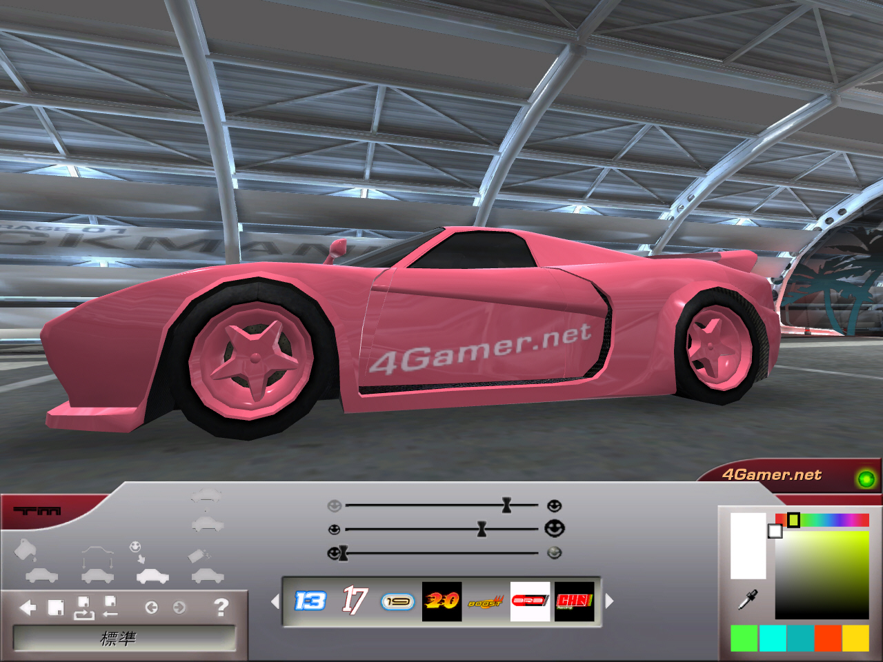 | いわゆる“リプレイフェチ”には嬉しいリプレイエディタ。カメラアングルの変更,モーションブラーの追加などでイカしたムービーを作ろう | ボディ色,カースキンの変更,デカール,テキストを貼り付けなどが可能なカーエディタ。センスのない色とマークで申し訳ありません | ネット上に無数にある「世界のトラックマニアが作ったキャンペーン」をダウンロードしてプレイできるのも本作の魅力だ |