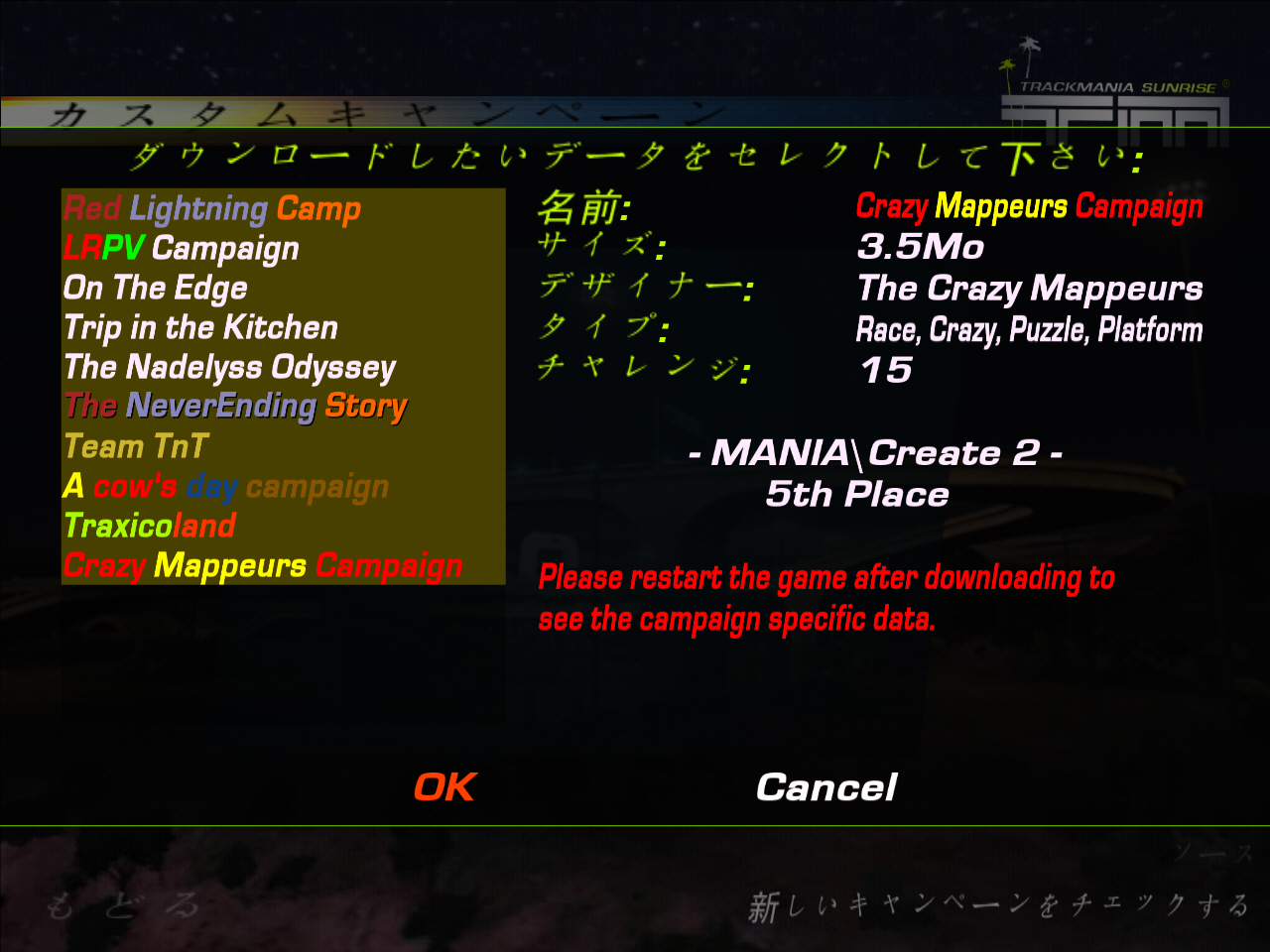 本作のメインとなるオフシャルキャンペーンは,規定タイム内でトラックを走り抜ける「レース」,規定リトライ回数内でトラックをクリアする「プラットフォーム」,あらかじめ用意された路面,ジャンプ台などのアイテムを使い,決められたタイム内で走り切れるコースを完成させる「パズル」,規定のスタントポイントを稼いでトラックを走り抜ける「スタント」,同じトラックを決められた回数,制限タイム内で走破する「クレイジー」,そして,「レース」とルールは同じだが,タイム制限とトラックの作りがはるかにシビアになった「エクストリームレース」といったキャンペーンが用意されている。