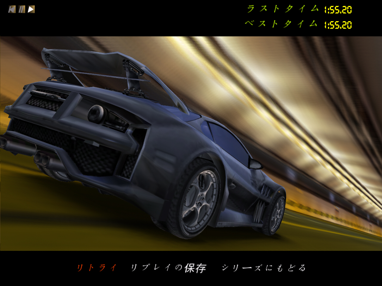 筆者の個人的なお気に入りがリプレイエディターだ。チャレンジ終了後にリプレイが流れるのだが,カメラアングルがワンパターンだし,いまいち気に入らないところがも多い。